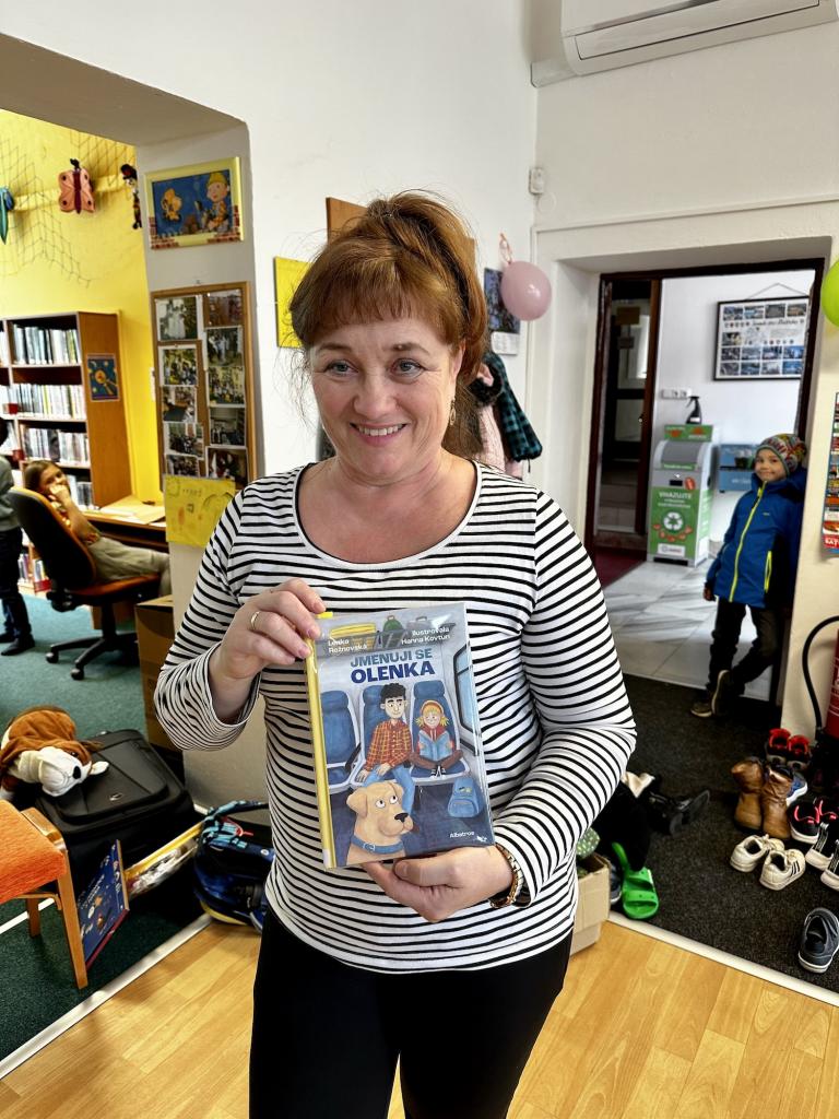Paní spisovatelka Lenka Rožnovská s paní knihovnicí Janou Baránkovou dětem připravily program podle nové knihy paní Rožnovské - Jmenuji se Olenka. Knihu ilustrovala Hanna Kovtun, ukrajinská ilustrátorka. Kniha začala vznikat v dubnu loňského roku, tedy po začátku války na Ukrajině a vyšla letos. “Olenka je ukrajinská prvňačka, jež se těší do školy na svou paní učitelku. Ráno, které přijde, je však úplně jiné, než si představovala. Začala válka. Olenka se sestrou Valjou a mámou musí utéct do bezpečí. Cesta do jiné země však není jednoduchá. Ještě štěstí, že je doprovází pes Dobro.”