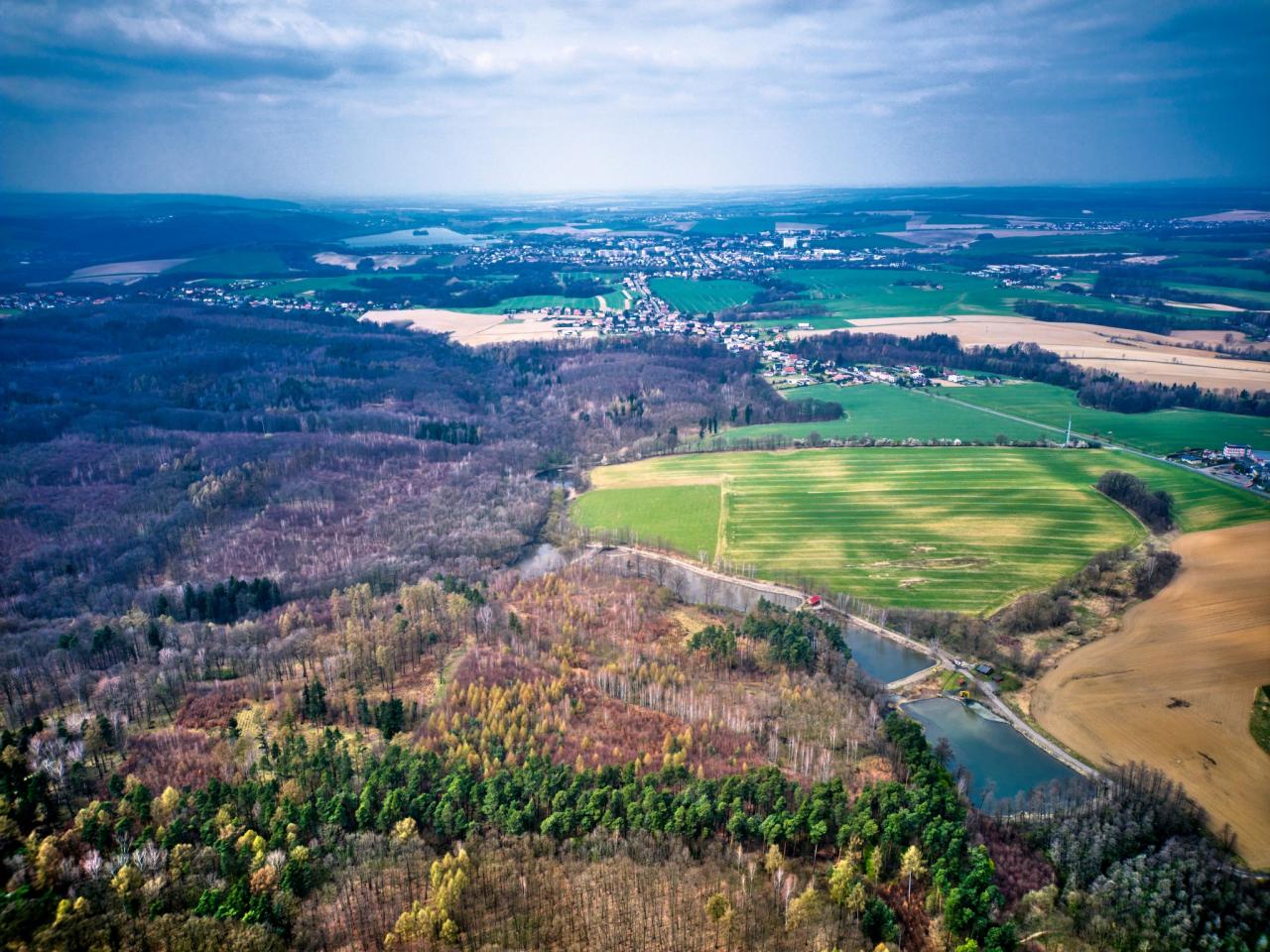 Fotografie oblasti u rybníků z dronu - duben 2023