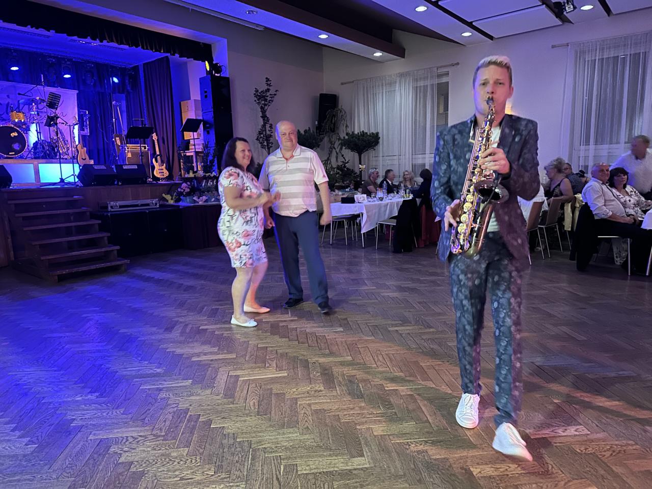 K tanci a poslechu hrála již osvědčená kapela Proxima Orchestra a ta vždy okamžitě po zaznění prvních tonů přilákala na parket množství párů 💃🕺💃🕺. O skvělé vystoupení se postaral saxofonista DeeSaxx - jeho podání známých hitů na saxofon bylo skutečně parádní. Vystupoval přímo mezi tančícími páry a vždy sklidil mohutné ovace 🎷🎷🎷.