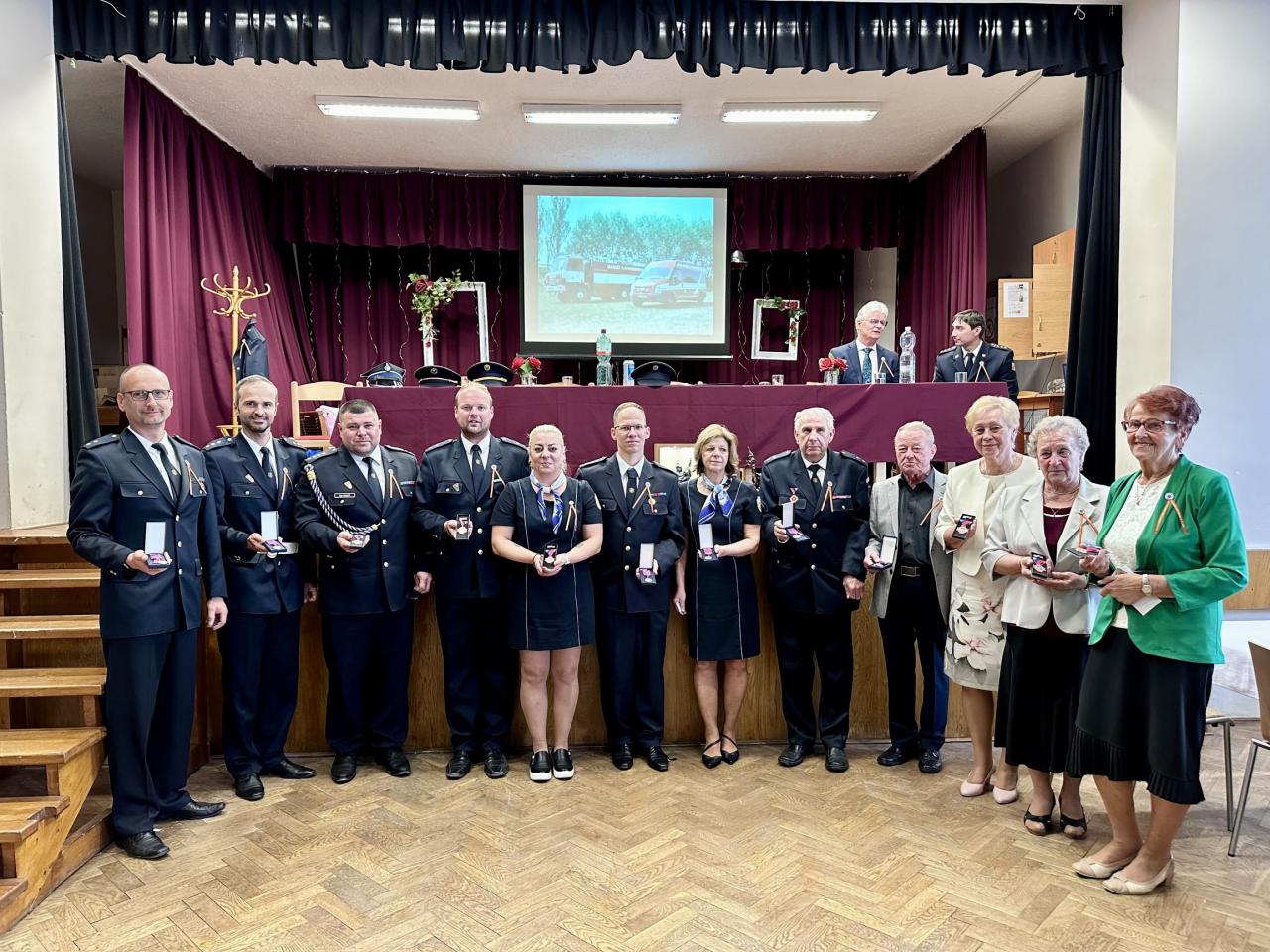 Za svou příkladnou službu byly vyznamenány některé členky a někteří členové SDH, medaile a ocenění převzali z rukou starosty sboru a spřátelených sborů. Plaketou byl také oceněn celý sbor. In memoriam byla předána medaile p. Rohovskému, bývalému starostovi sboru. Poté místostarostka připnula slavnostní výroční stuhu na prapor sboru.