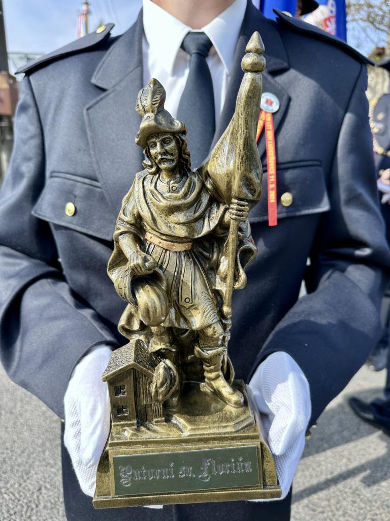 Byla také předána putovní soška sv. Floriána, patrona hasičů - nyní poputuje na oslavy příští rok v Opavě.