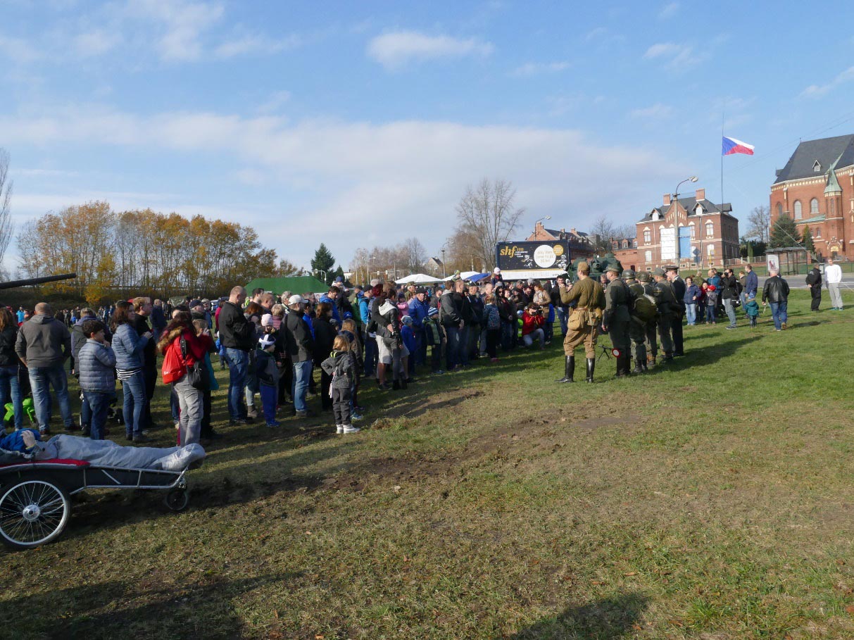 Odpoledne pokračovala akce na Menšíkové louce, skončila v 15.30 závěrečnými proslovy, výstřelem z tanku T34 a státní hymnou.
