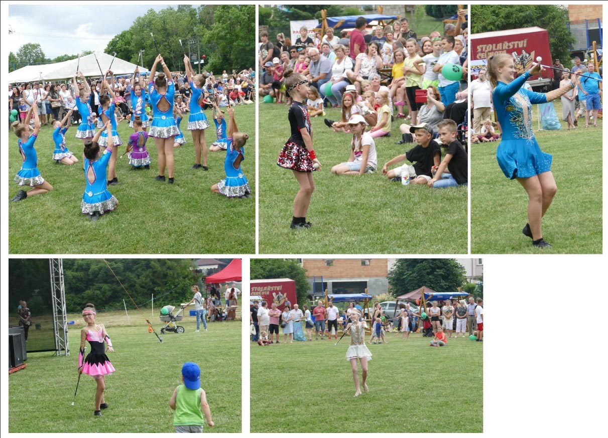 Celé území areálu od ulice Na Návsi „u vrby“ až po hlavní fotbalové hřiště bylo zaplněno z poloviny kolotoči, houpačkami a dalšími pouťovými atrakcemi pro děti. Na druhé polovině bylo postaveno velké podium, a na několika plochách byly vytvořeny kryté prostory s lavicemi a stoly pro návštěvníky. Byly tam i provizorní stánky pro vaření a prodej guláše, indiánský stan skautů, vzduchovková střelnice KD Vrablovec, stánky s občerstvením, dobrotami a další. Další stánky s jídlem a pitím byly i v areálu hlavního hřiště. Bylo příjemné letní počasí, návštěvníků bylo hodně.
