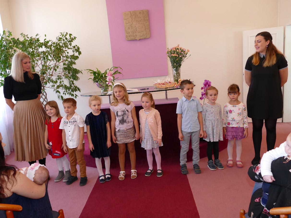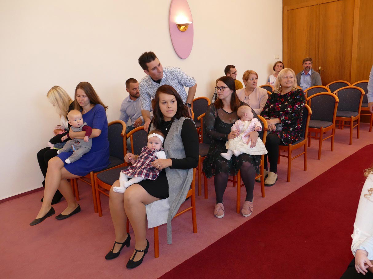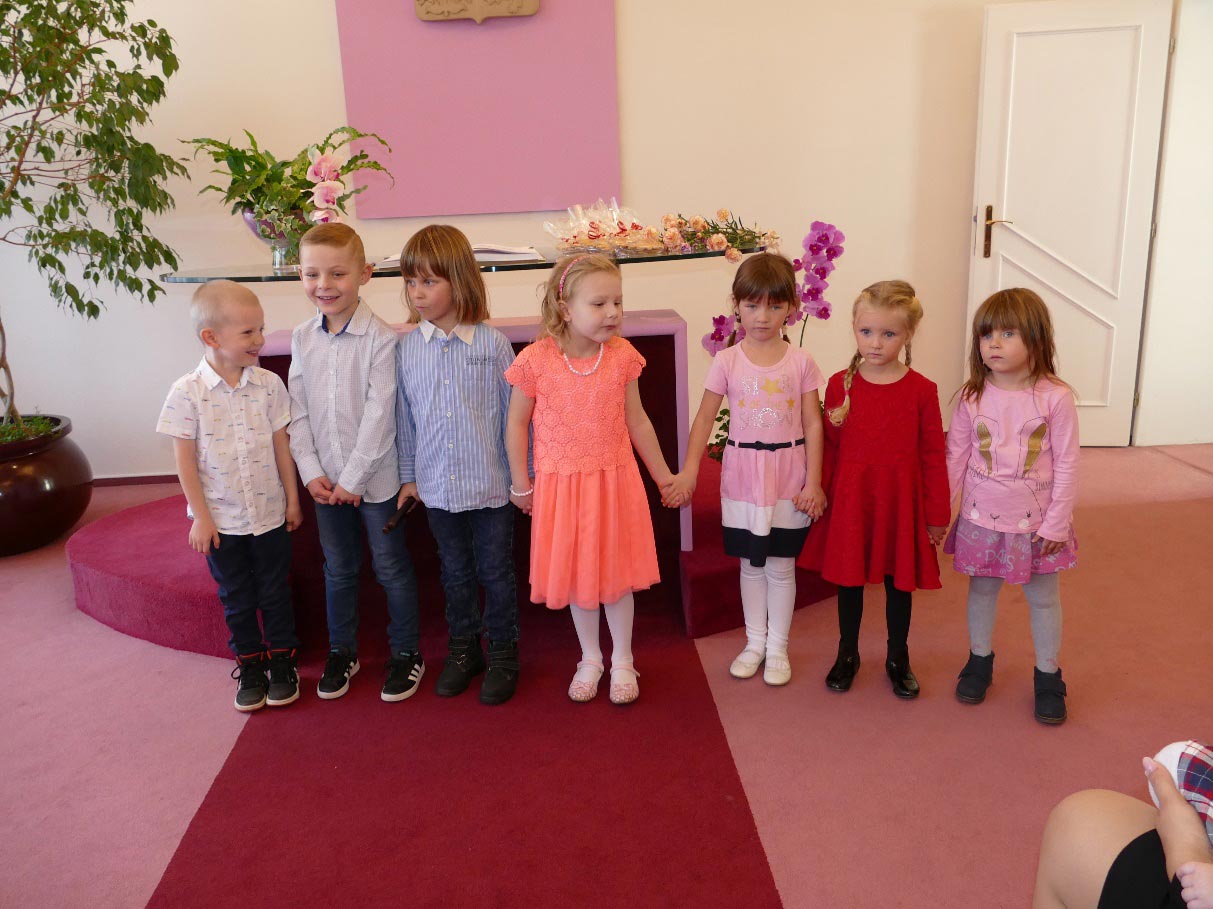 V každé skupině místostarostka pronesla úvodní slovo a pak rodičům s jejich vítanými dětmi jednotlivě gratulovala, předala pamětní list a maminkám kytičku. Rodiče pak převzali dar obce 2000 Kč a zapsali se do pamětní knihy. Byla to hezká slavnost.