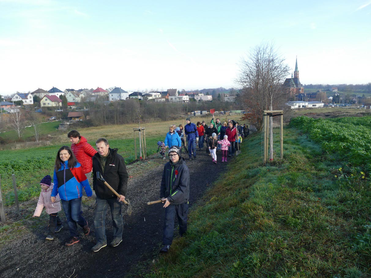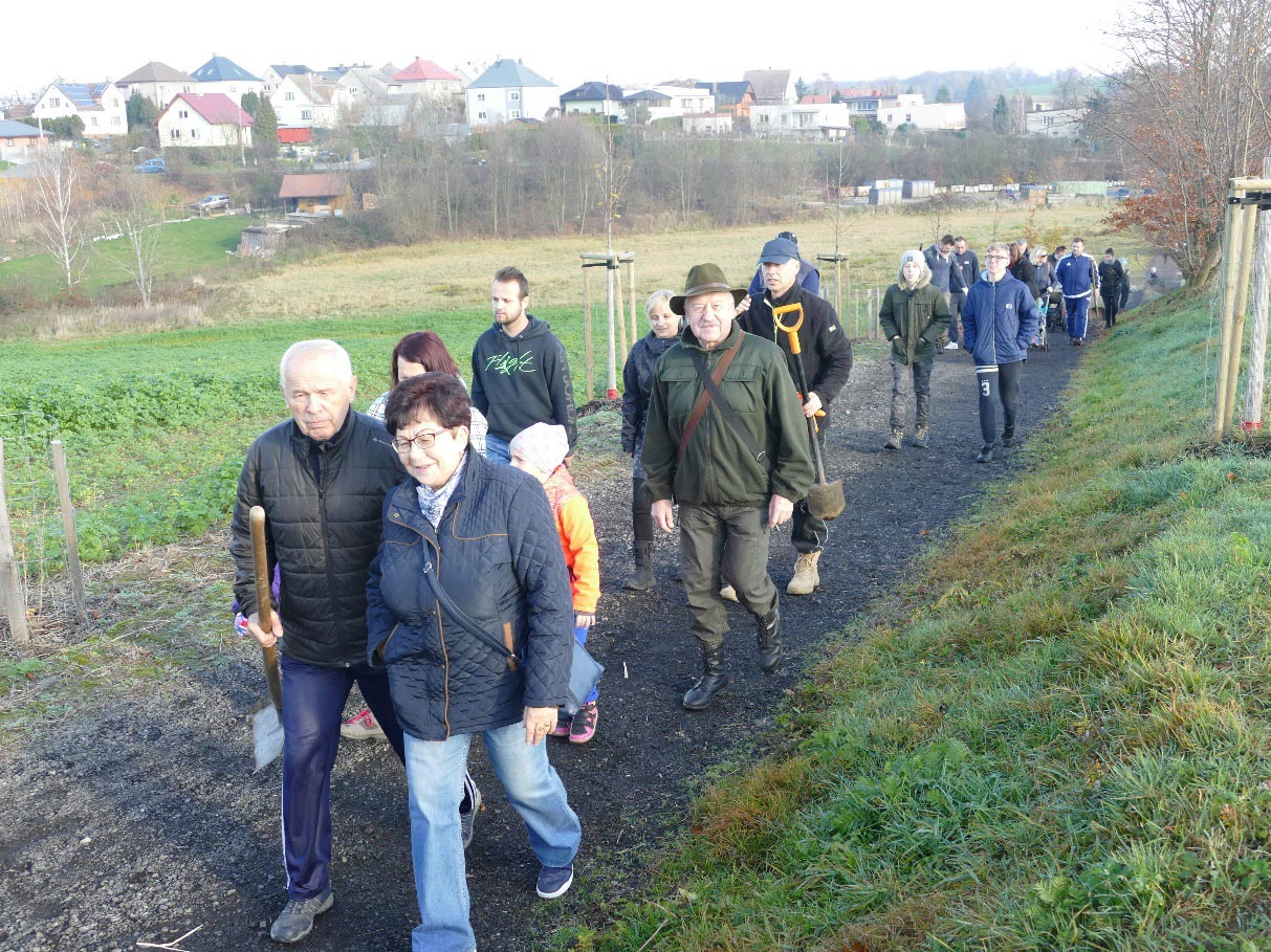 Jde o 650 metrů dlouhý úsek od pomníku sv. Františka po roh farského lesa. Celkem bylo vysazeno 78 líp, z toho 40 stromů před dvěma lety za peníze z dotace fondu životního prostředí a 38 líp, které si letos zaplatili občané, místní podnikatelé a spolky. Za každý strom zaplatili 1400 Kč a v sobotu 23. 11. 2019 je pod dohledem zaměstnanců odborné zahradnické firmy zasadili. Ten den bylo velmi příjemné podzimní počasí se sluníčkem a teplotou nad +10ºC. K sázení se sešlo přes 100 lidí. Starosta obce Daniel Havlík všechny přivítal a sdělil jim potřebné organizační pokyny. Pro každý strom už byla firmou vyvrtaná díra, u ní ležel cca 3metrový strom s kořenovým balem v jutovém pytli, kůly pro podpůrnou ohrádku, jutový pás na obalení kmene, drátěné pletivo na ochranu před okusováním zvěří, hnojivo. K dispozici bylo i potřebné nářadí kromě lopat, které si sázející přinesli z domu. Začalo se po desáté hodině, sázení bylo dokončeno kolem 13. hodiny. Na vysázených stromech chyběly jen cedulky se jmény donátorů. Ty nechá vyrobit a umístit obec Ludgeřovice. Nakonec se všichni sešli k malému občerstvení u chaty Ostříž, které zajistil pan farář Václav Koloničný spolu se Skauty.