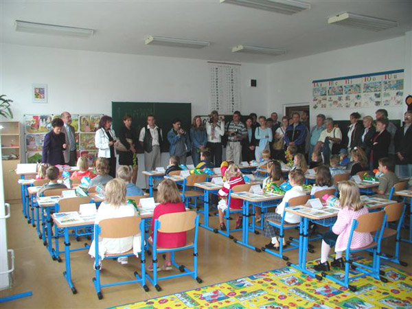 Děti se těší na spolužáky a paní učitelky, dospělí s dychtivostí čekají na reakce svých ratolestí, nejmladších žáků – prvňáčků. Vedení školy a všichni pedagogové se snažili školu vyšperkovat a udělat krásné a tvůrčí zázemí.Mnohé třídy jsou vybaveny novým nábytkem. Zní hudba , verše a proslovy. Prvňáčky obdarovávají nejstarší žáci školy kytičkou, za což děkujeme paní Brankové. A nyní nastává chvíle nejdůležitější, příchod těch nejmladších do třídy. Modře laděné lavice , krásný nový koberec a spousta výzdoby dokreslují slavnostní okamžik tohoto dne. Pak začíná uvítání ředitelkou školy, panem starostou obce. Sladkou tečkou je kornout plný sladkostí, který dětem darovala škola. Všem našim žákům přejeme úspěšný rok plný optimismu a radosti z vítězství.