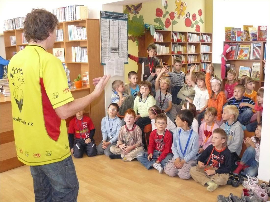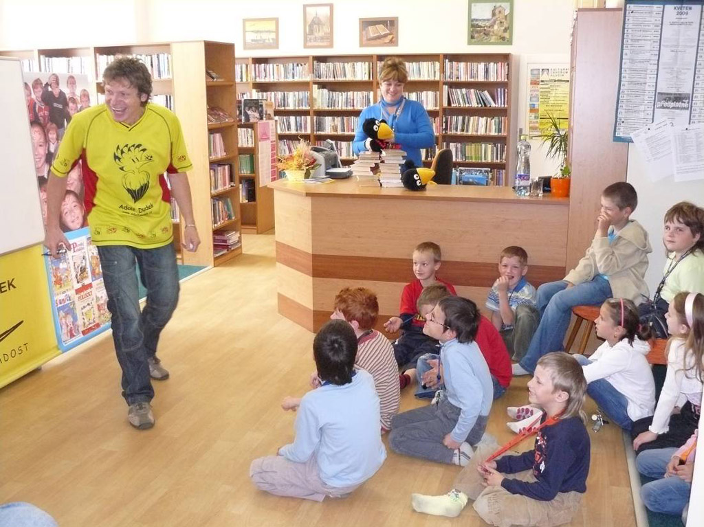 V obecní knihovně 2. června moc hezky bavil prvňáčky základní školy známý malíř a ilustrátor dětských knížek pan Adolf Dudek.