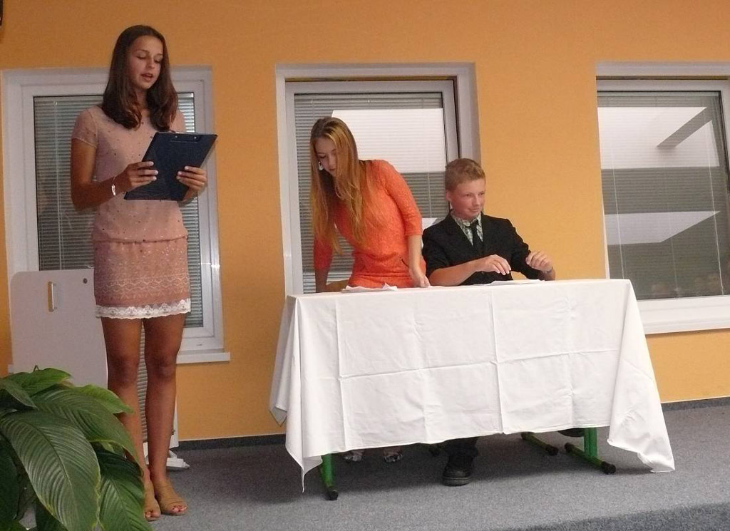 Jako každoročně i letos se v první pracovní den měsíce září ráno sešli žáci a jejich rodiče nebo prarodiče před školou. Před osmou hodinou jim školu otevřeli a všichni se nahrnuli v přízemí do haly. Tam jim vybraní spolužáci na přivítanou zahráli, zazpívali a zarecitovali.