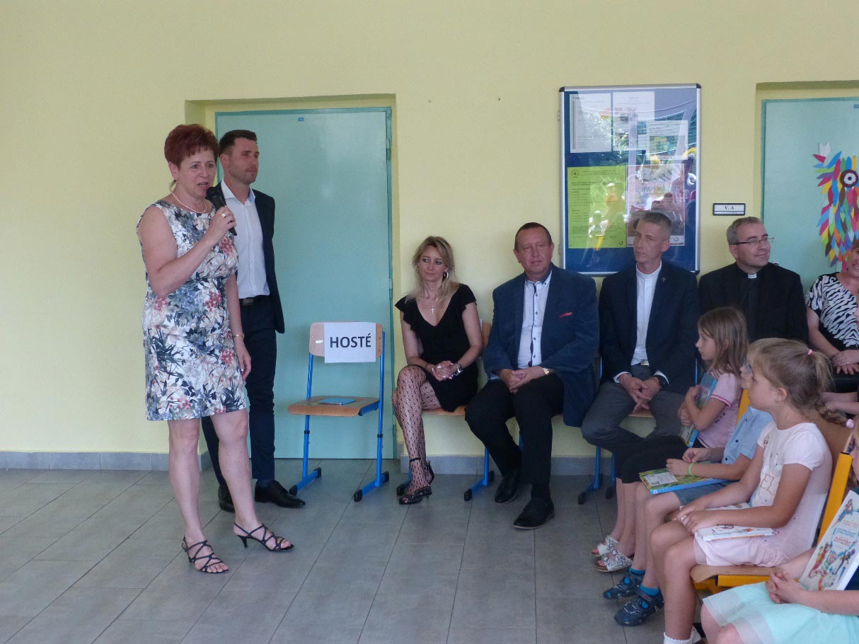 Předávání ocenění sledovali rodiče žáků. Nakonec všem popřáli hezké prázdniny ředitel školy Mgr. Karel Moric, místostarostka Ludgeřovic Ing. Alena Janošová, starosta Markvartovic Ing. Pavel Myslivec, ředitelka markvartovické základní školy Mgr. Šárka Kubišová, farář Mgr. Václav Koloničný, jáhen Mgr. Zdeněk Uher.