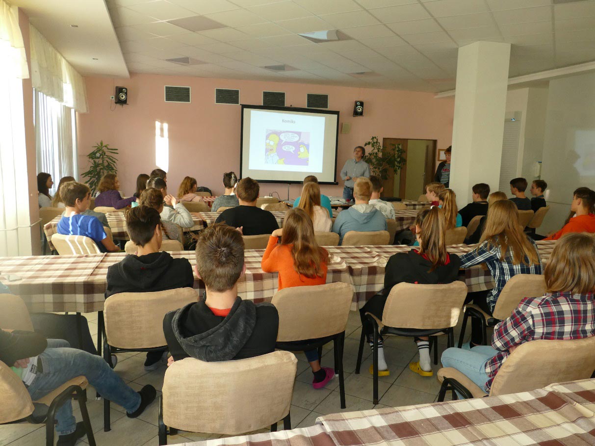 Pro žáky 9. tříd organizovala obecní knihovna. Komiksy jsou současnou mládeží velmi oblíbené. Zvykli si komunikovat se svými vrstevníky pomocí mobilu a sociálních sítí, zprávami SMS, fotkami a to velmi lapidárně, stručně. Čtení normálních knih nemají moc v oblibě. Líbí se jim proto komiksová literatura, tj. známé obrázky aktérů (osob, zvířat atd.), které mluví pomocí stručných textů zapsaných v nakreslených bublinách u jejich úst. Prostě komiksová literatura je u nich v kurzu.