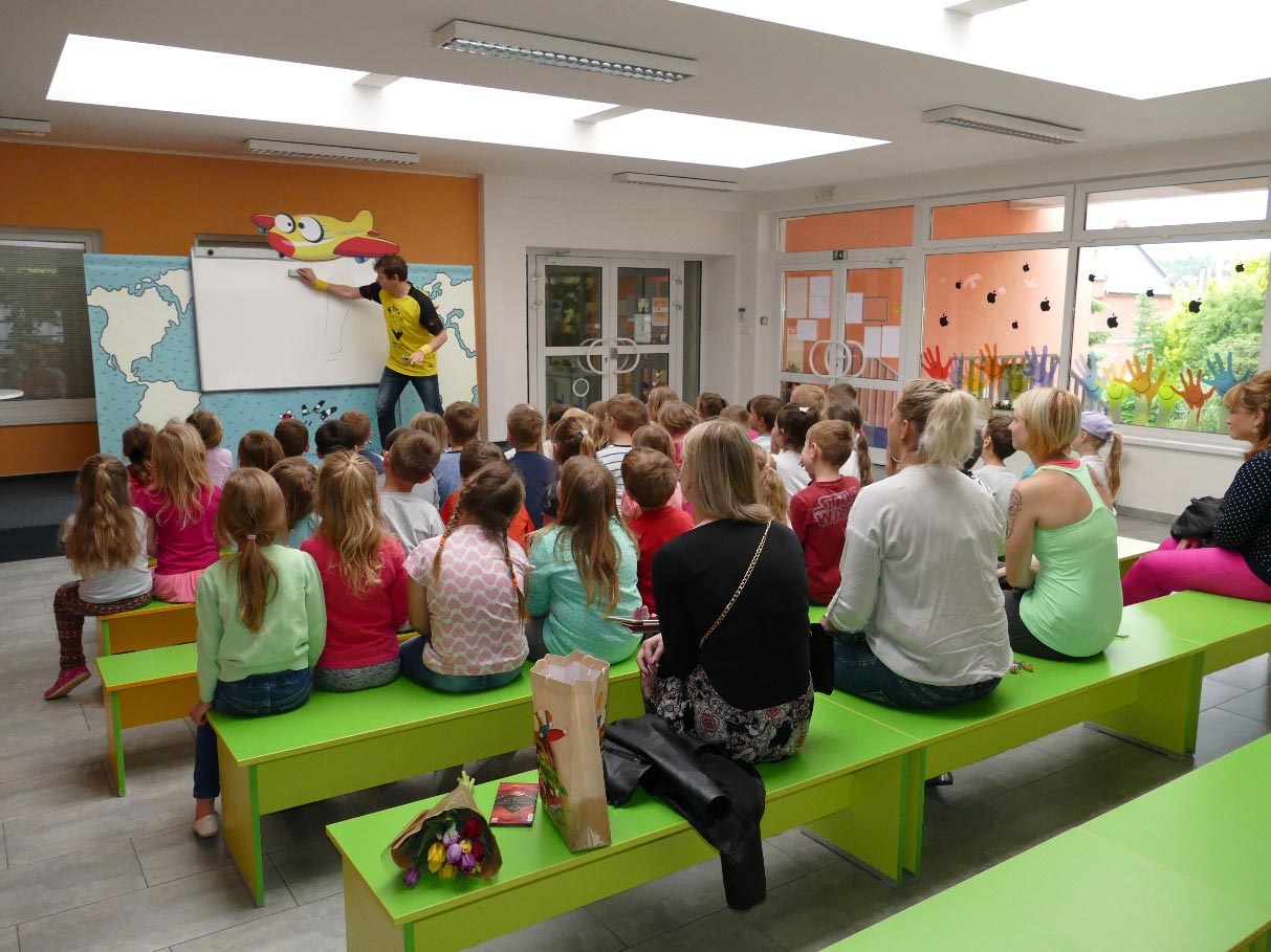 Kreslíř Adolf Dudek besedoval s dětmi v základní škole 18. 5. 2018