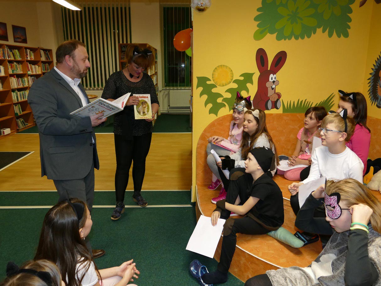 Pohádky jim čtou a povídají zaměstnanci obce a to starosta Mgr. Daniel Havlík, vedoucí úseku správních činností Vlasta Bortlíková, referentka Lenka Jurečková a knihovnice Jana Baránková. Pro děti pokaždé připraví zajímavý program se soutěžemi, kreslením, zpíváním, večeří, hledáním pokladu. Společně pak stráví noc v knihovně na karimatkách a ráno akci ukončí společnou fotografií a před obecním úřadem zdobením stromu „pohádovníku“ vlastnoručně vyrobenými ozdobami (ráno fotografovala Lenka Jurečková). Starosta byl v roli samotného Josefa Čapka, Jana Baránková jako známá hrdinka „kočička“ z dětmi milovaných Čapkových pohádek „O pejskovi a kočičce“. Děti se moc bavily a vydržely poslouchat pohádky až do půlnoci. Ráno si je plné zajímavých zážitků a velmi spokojené odváděli rodiče domů.