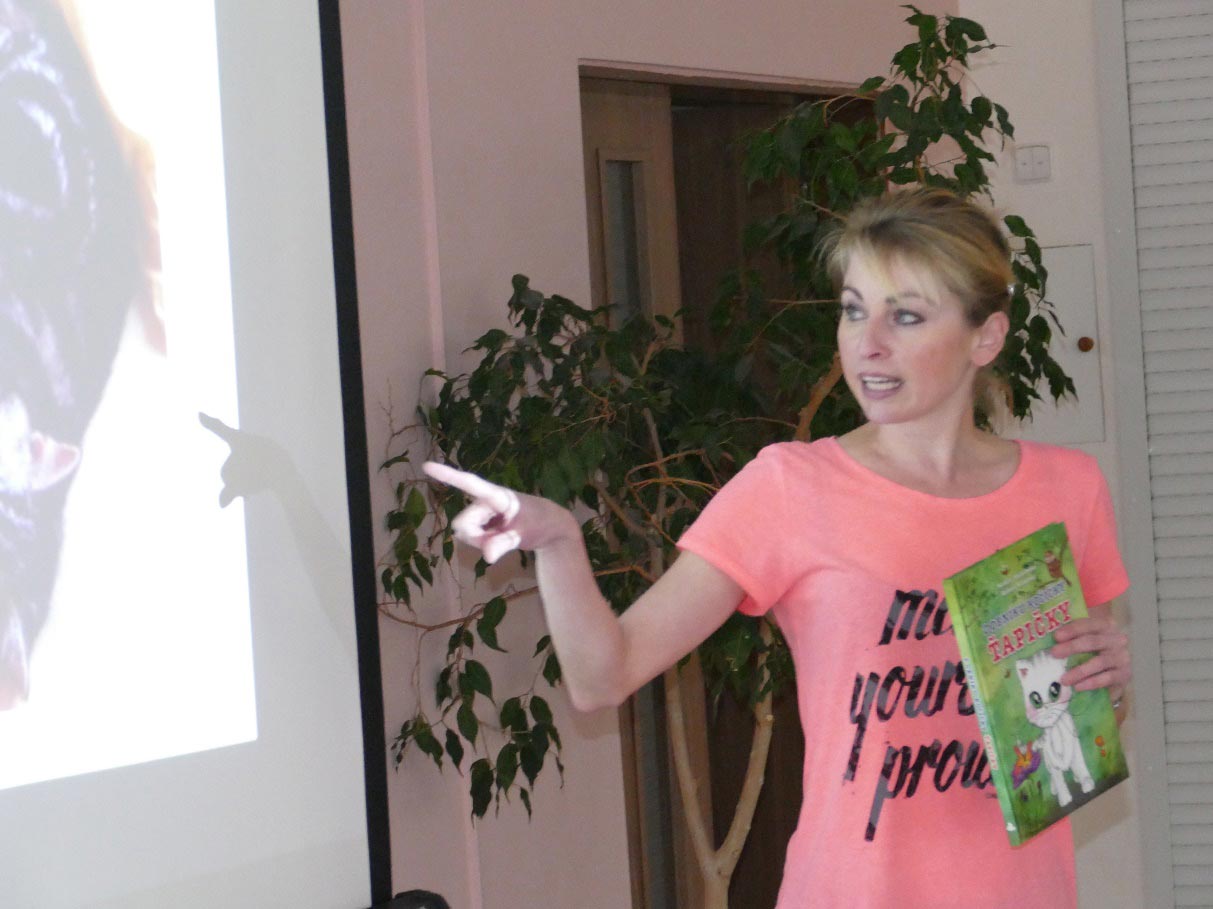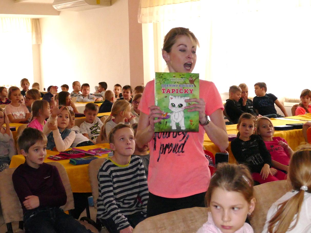 Konala se pro žáky 1. a 2. tříd v jídelně základní školy. Pořádala obecní knihovna. Mladá, půvabná, velice plodná spisovatelka a scénáristka Markéta Harasimová už napsala 20 úspěšných knih a scénářů různých žánrů od románů pro mladé dívky po detektivky. Jedno z jejich posledních děl je pěkná knížka „Z deníku kočičky Ťapičky“ pro děti. Napsala ji o kočičce, kterou má sama doma. Dětem ji představila a pak už ústy spisovatelky povídala sama kočička, samozřejmě mazlivým kočičím hláskem, který autorka knížky ovládala stejně krásně jako třeba herečka Jiřina Bohdalová v pohádkách „Křemílek a Vochomůrka“. S dětmi si kočička povídala o svém kočičím životě, radostech, nebezpečích, bolístkách, mazlení, kamarádech. Také o tom, jak by chtěla, aby se k ní děti chovaly. Děti byly z besedy nadšené.