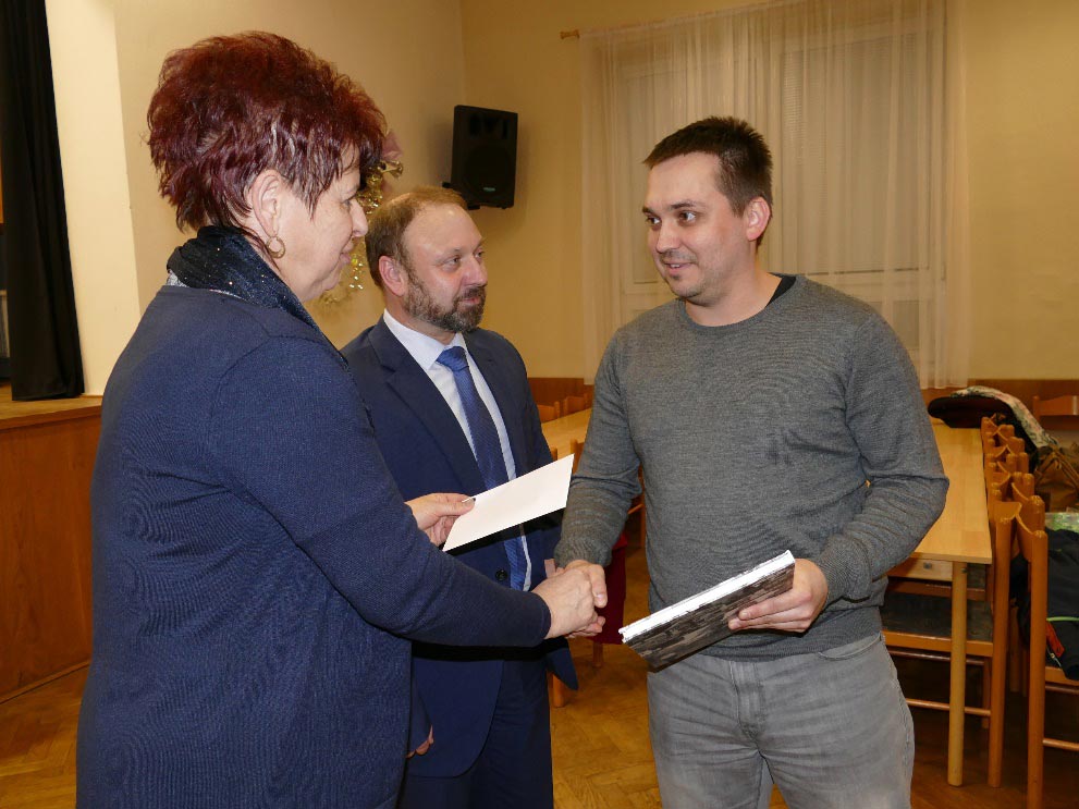 Před jednáním o bodech programu starosta obce Mgr. Daniel Havlík a místostarostka Ing Alena Janošová ocenili pana Tomáše Hrubého, držitele Zlaté medaile Prof. Mudr. Jana Janského za 40 bezplatných odběrů krve, a předali mu jako dary obce knihu a 1000 Kč.
