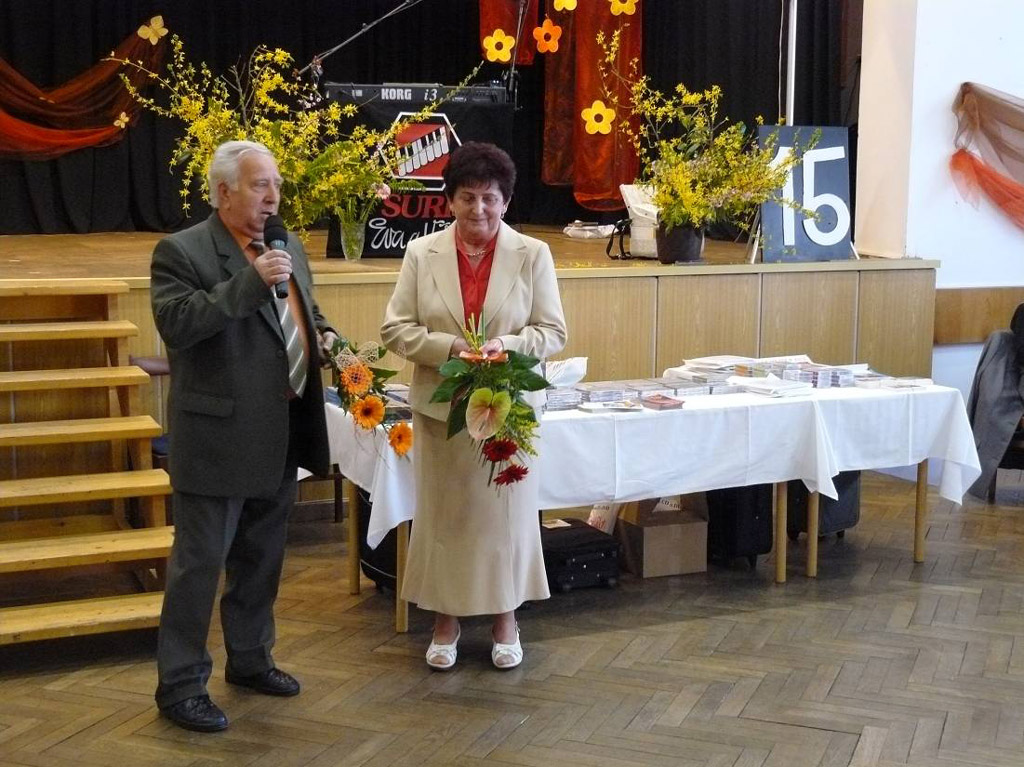 Skupina „Eva a Vašek“ pak měla příjemné tříhodinové vystoupení plné hezkých písniček k poslechu i tanci. Všichni v sále se dobře bavili. Na památku se nechal s Evou a Vaškem vyfotit celý výbor klubu Byla to vydařená oslava.