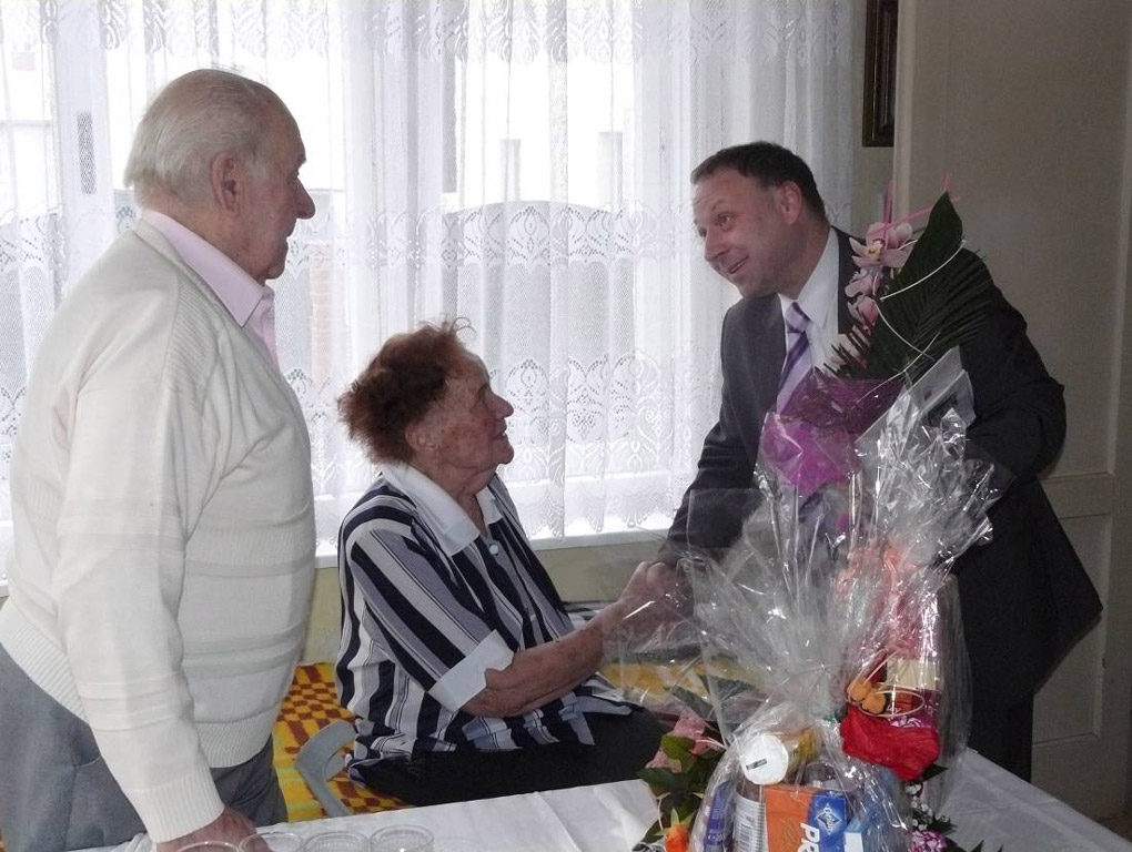 Starosta obce Mgr. Daniel Havlík a zástupci všech vrabloveckých společenských organizací manželé Jurčkovy 7.2.2013 navštívili, aby jim k významnému životnímu jubileu gratulovali, poděkovali za vše, co pro Vrablovec vykonali a dosud dělají, popřáli dobré zdraví a předali drobné dárky.