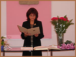 Matrikářka, paní Gabriela Kupcová vyzvala rodiče, aby svým podpisem v pamětní knize potvrdili účast na dnešní oslavě a tím si uvědomili velikou odpovědnost ve výchově nového člověka v naší krásné vlasti. Uvedla, že rodiče rovněž převezmou pro své děťátko finanční dar Obce Ludgeřovice .Rodiče se svými dětmi přijímali postupně gratulaci z rukou paní ředitelky Mgr. Heleny Piprekové, která při tomto setkání po letech poznávala v mnohých své žáky, dnes již v roli rodičů.Všem předala kytičku, jako sponzorský dar paní Moniky Brankové - Květinářství Flora Ludgeřovice Slavnost probíhala za hudebního doprovodu člena Kubínova kvarteta a profesora Janáčkovy konzervatoře v Ostravě pana Mgr.Jana Niederleho (housle) a studentky Jany Drechslerové (varhany).