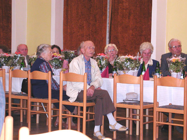 Dne 25.6.2004 uspořádala naše obec "Setkání s jubilanty", kterého se naši senioři zúčastnili v hojném počtu. Při příchodu se všichni zapsali do kroniky a po uvítací řeči pana starosty Mgr. Petra Kolarze přečetly p. Kupcová a p. Bortlíková jména všech, kteří se v letošním roce dožívají 80-ti a více let.