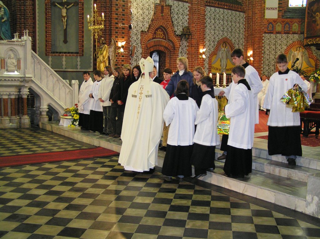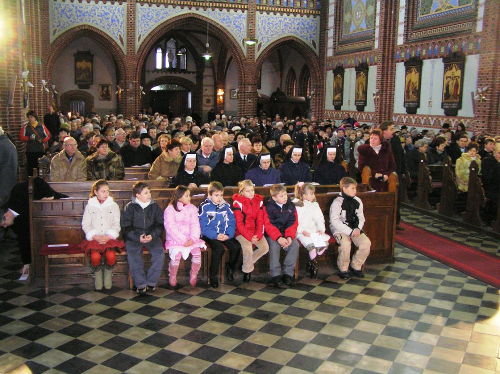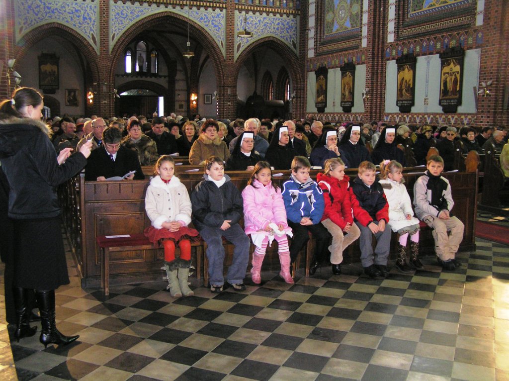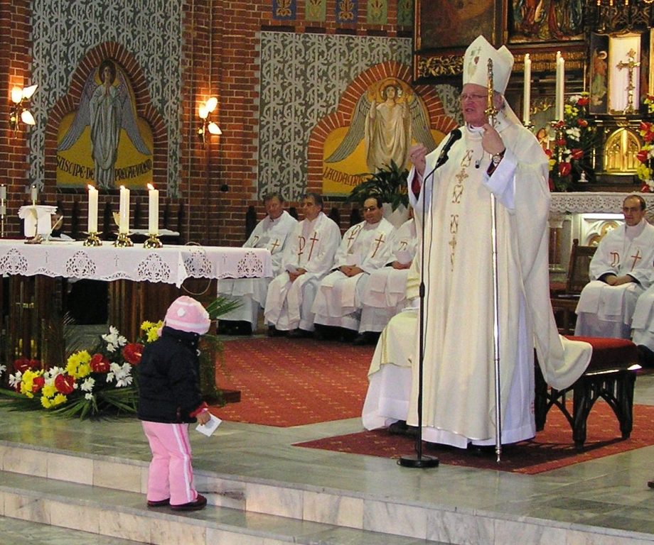 Děti z obcí farnosti (z Ludgeřovic, Markvartovic. Petřkovic) přinášejí symbolické obětní dary. Slavnostní mši svatou přenášela televize NOE.