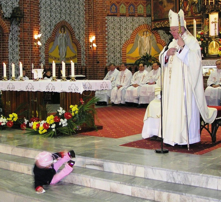 Jedna holčička chtěla vidět a slyšet kázání Msgr. Lobkowicze úplně zblízka. Ovšem zatočila se jí hlava...
