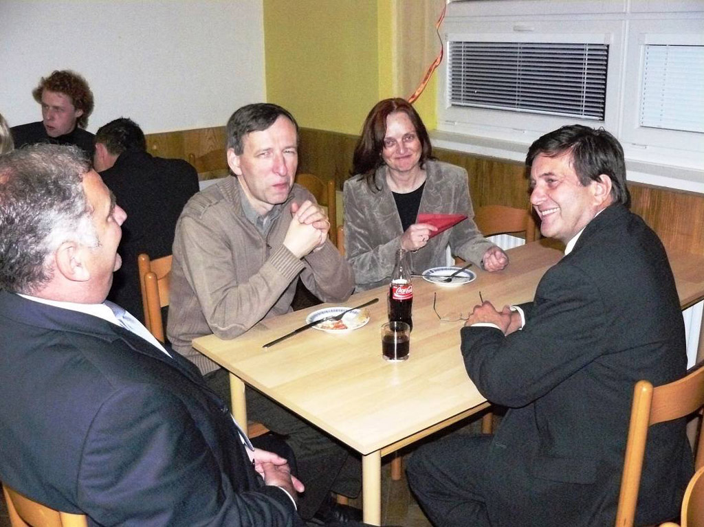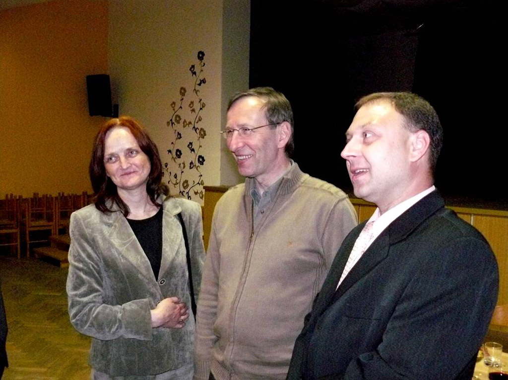 Po koncertu se v sále Obecního konalo společenské setkání organizátorů s účinkujícími a hosty koncertu. Setkání zahájili pánové Mgr. Jaromír Javůrek, ředitel festivalu a Ing. Jan Vjačka, partner festivalu. Ředitel festivalu mimo jiné vysoce ocenil zásluhy Ing. Jana Vjačky o festivalové koncertování v Ludgeřovickém kostele. Ing. Jan Vjačka pak naznačil, že i příští rok zde festivalový koncert bude. Po slavnostním přípitku se pak hovořilo pochopitelně především o hudbě. Byla tu vzácná příležitost mluvit o ní s mistrem Jaroslavem Tůmou, který má velikou zásluhu na propagaci jedinečných varhan v našem kostele. Bez něj by zde festivalové koncerty určitě nebyly. Na zdejších varhanách koncertoval už počtvrté, z toho podruhé na festivalu Janáčkův máj. Na posledních třech snímcích je tento mimořádně sympatický umělec se svou partnerkou, s ředitelem a partnerem festivalu a se starostou obce Ludgeřovice Mgr. Danielem Havlíkem.