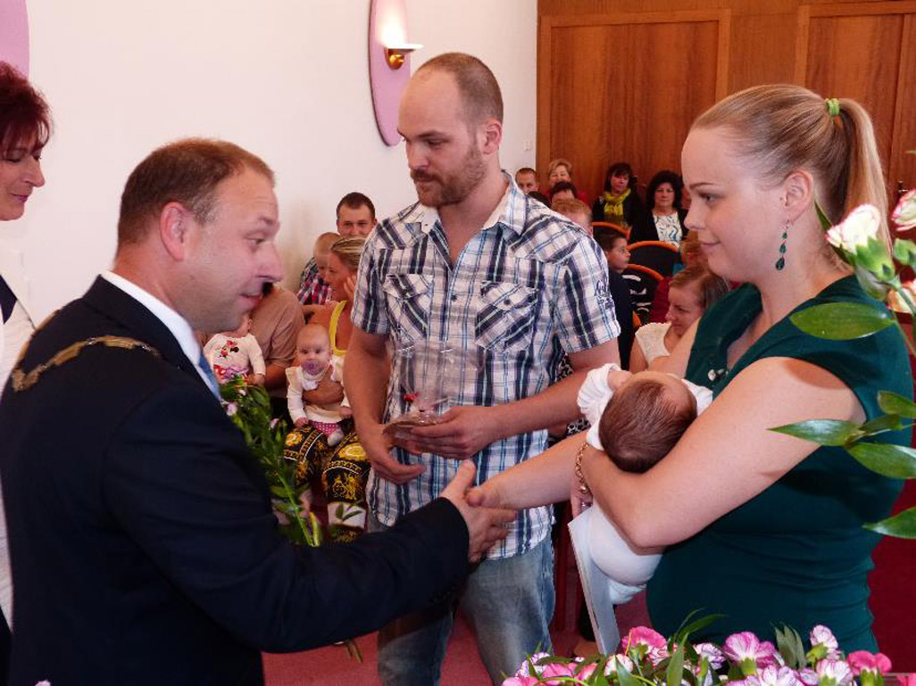 Slavnostní proslov měl starosta obce Mgr. Daniel Havlík. Obřad hudbou doprovázena dvojice učitelů hlučínské hudební školy. S hezkým pásmem povídání a písniček vystoupili žáci druhé třídy základní školy, vystoupení s nimi nacvičila paní učitelka Mgr. Jana Grzychová. Rodiče se podepsali do pamětní knihy obce, převzali dar obce 2000 Kč, keramického slona pro štěstí a pamětní list, maminky kytičku. Kytičky věnovalo květinářství paní Miluše Václavíkové. Na památku se jako rodiny fotografovali.