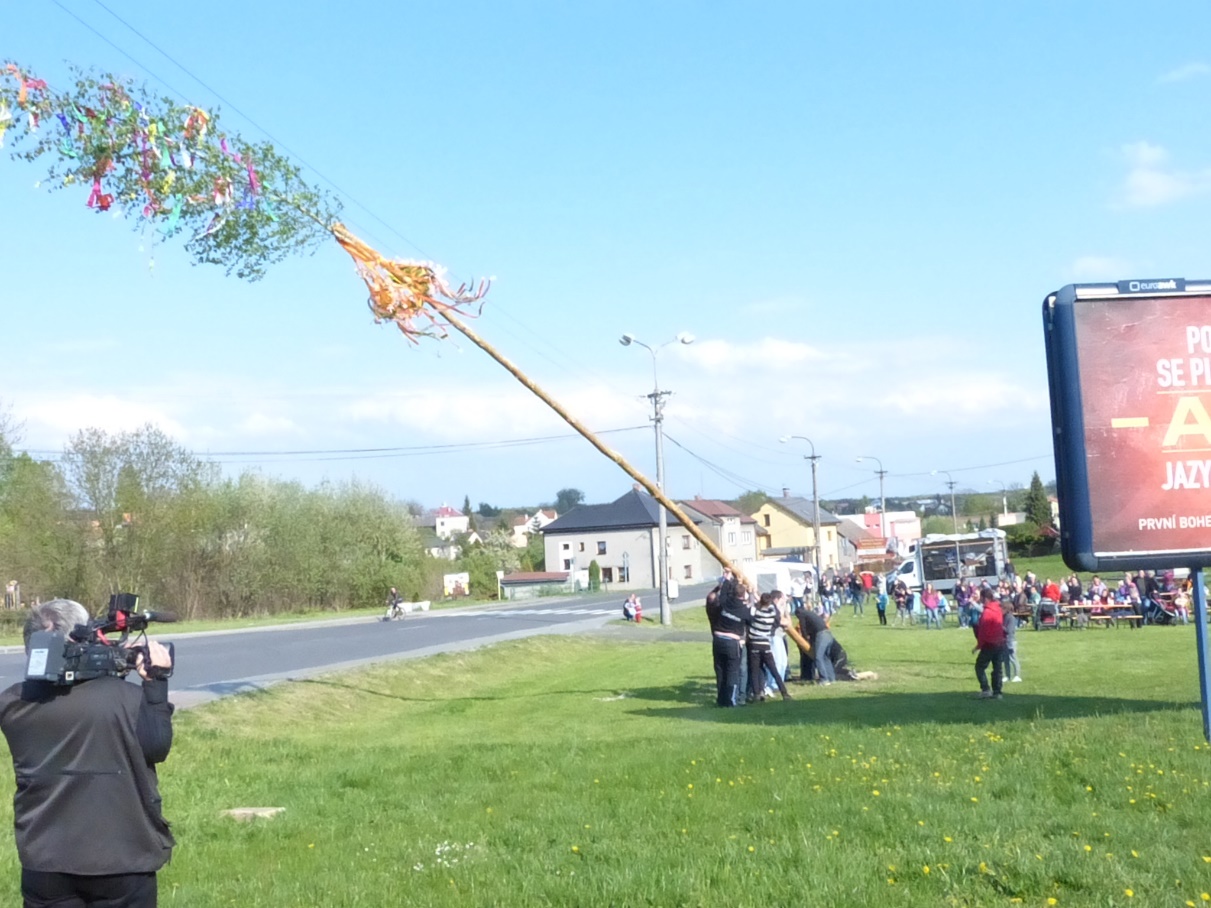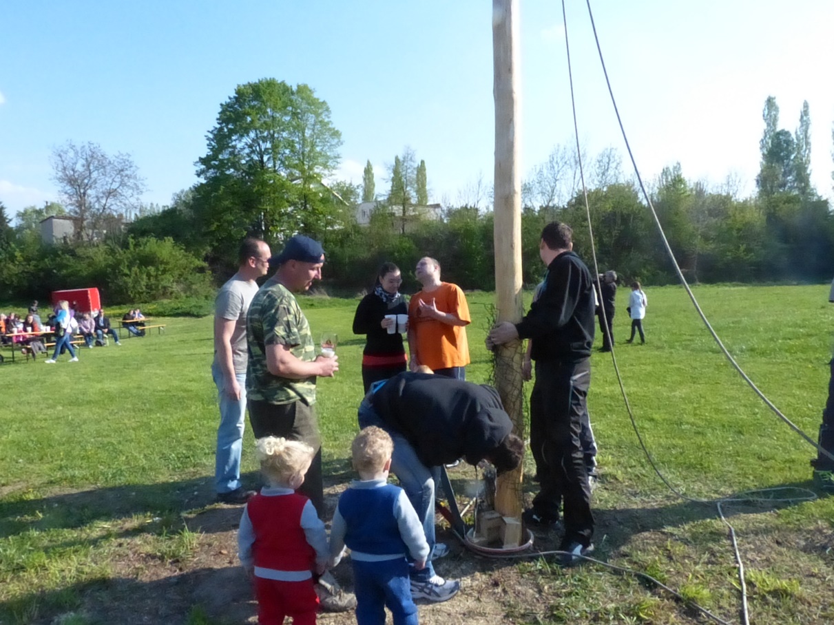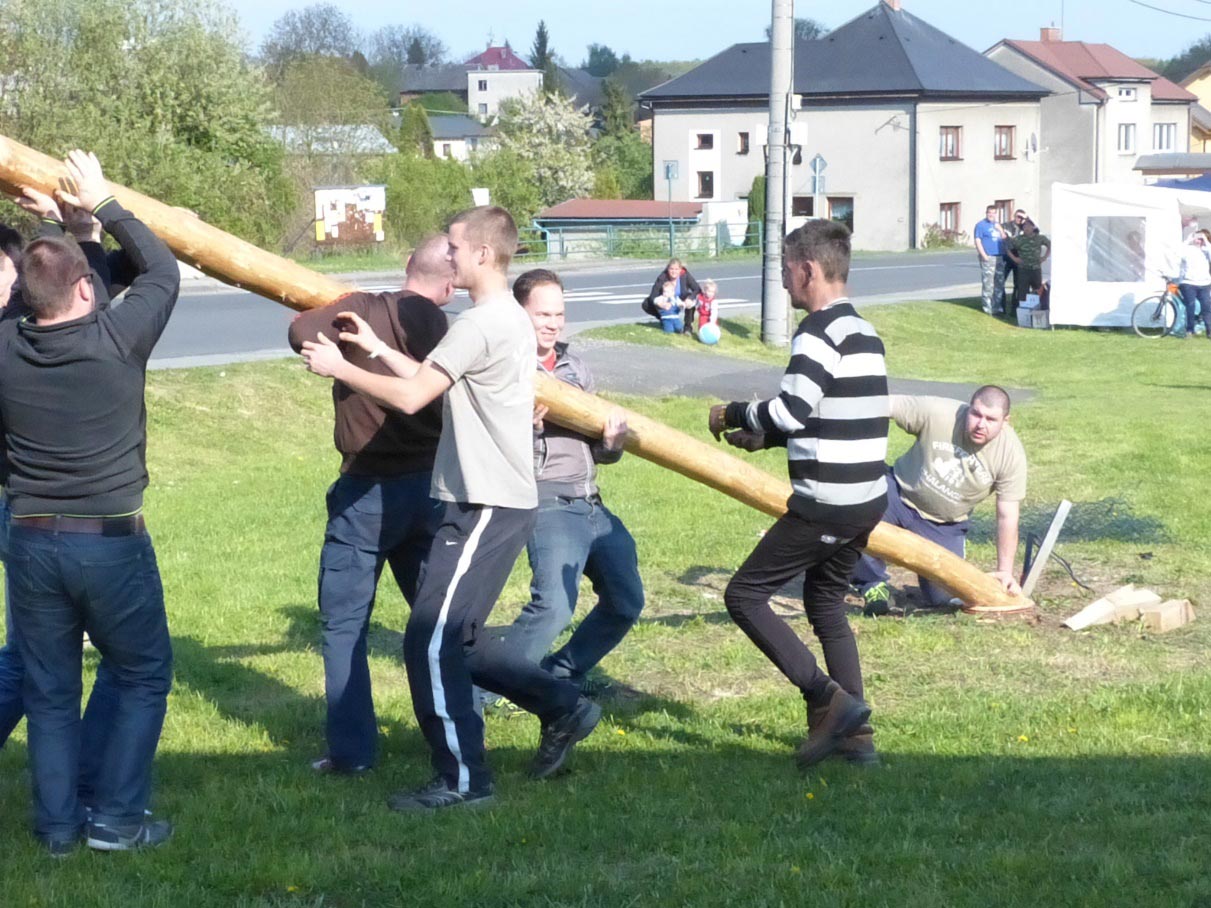 Stavění obecní májky na Menšíkové louce odpoledne 2.5.2015