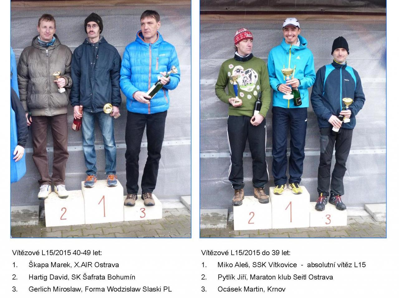Šestý ročník tohoto už tradičního veřejného běžeckého závodu se konal 14.3.2015. Stejně jako v předchozích ročnících byl start i cíl závodu u hřiště TJ. Tradičně se běžely dva závody – 3 km kondiční běh po okolí a zpět a 15 km hlavní závod (L15) směrem do Petřkovic pak lesem do Šilheřovic a zpět. Bylo nepěkné počasí, zamračeno, vytrvale drobně pršelo, teplota jen 2 až 3°C.