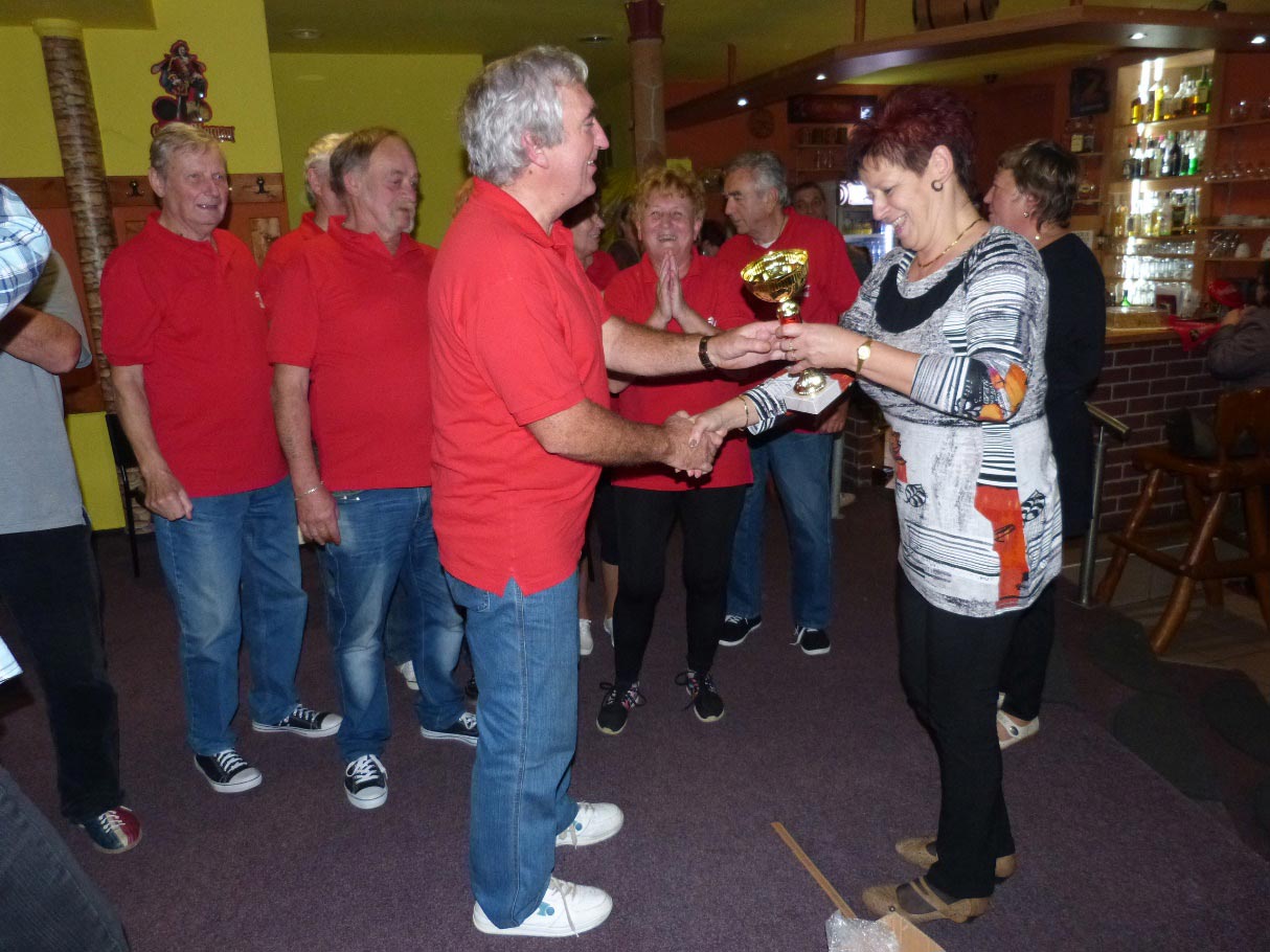 Pořádal Klub důchodců Ludgeřovice, pozvání využily i kluby důchodců z Vrablovce a Petřkovic. Každý klub postavil své osmičlenné soutěžní družstvo. Zvítězili vrablovečtí (červené dresy), druzí byli petřkovičtí (v civilním oblečení), domácí (v bílých tričkách) byli třetí. Obec Ludgeřovice věnovala poháry, které soutěžícím družstvům po dokončení soutěže předala místostarostka Ing. Alena Janošová. Senioři prožili ve Slezském dvoře příjemné odpoledne, bowlingové dráhy nezahálely ani o skončení soutěže družstev. S chutí si zasportovali i další důchodci, všichni odcházeli spokojení.