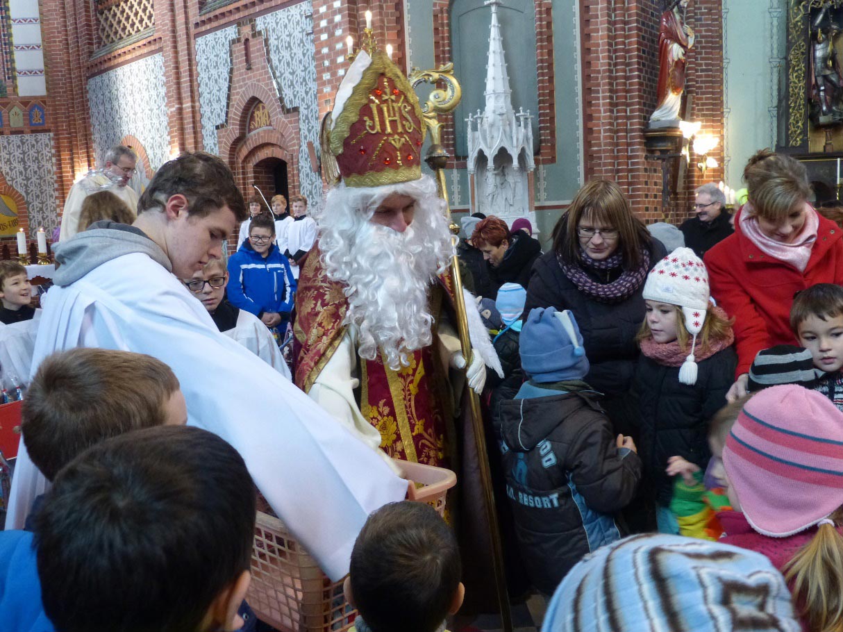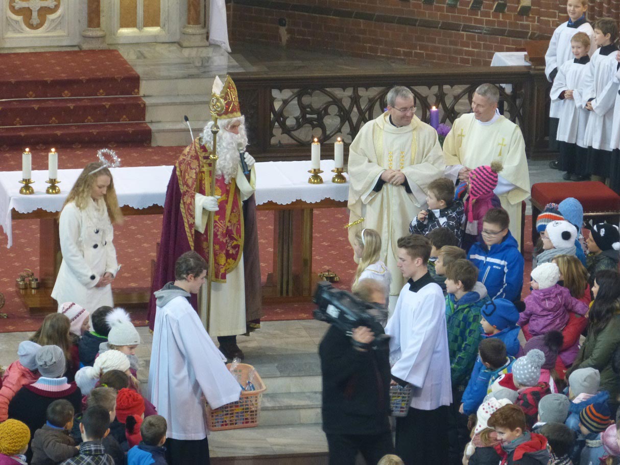 Mikuláš přišel po nedělní „velké“ mši svaté, samozřejmě bez čerta, ten nemá v kostele co dělat. Pomáhali ministranti. Dětí si pro dárek přišlo opravdu hodně a dárků pro ně bylo několik košů.