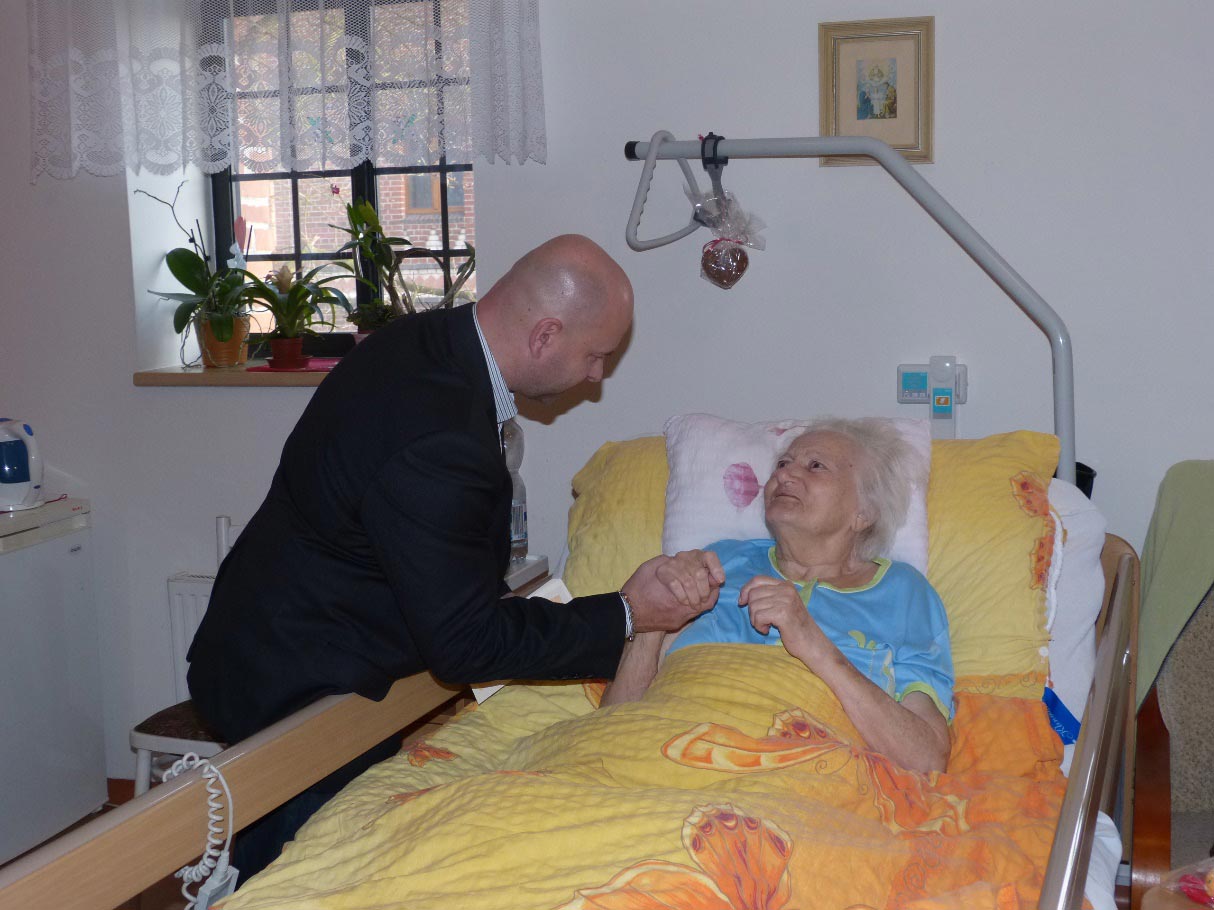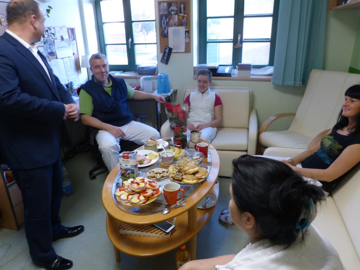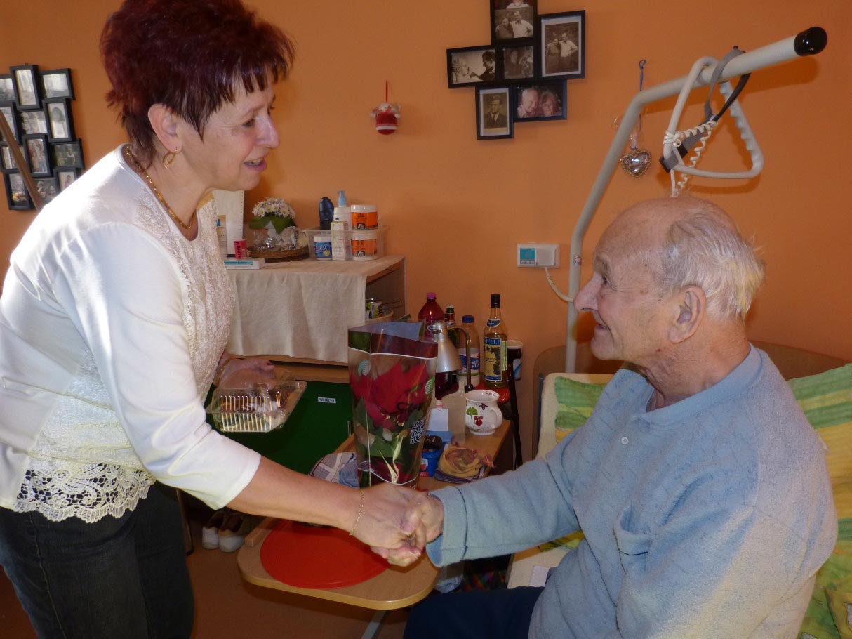 Starosta Mgr. Daniel Havlík, místostarostka Ing. Alena Janošová a pracovnice obecního úřadu Lenka Jurečková k tomu podle mnohaleté tradice navštívili Charitní domov 17.12.2016. Přidali se k nim ředitel Charity Hlučín Mgr. Bc. Lukáš Volný a vedoucí charitního domova Bc. Kamil Kupka. Zašli za každým klientem, každému přáli pěkné vánoce, dobré zdraví a předali vánoční hvězdu a krabičku s cukrovím. Nakonec stejným způsobem popřáli i všem členům ošetřovatelského kolektivu za obětavou, fyzicky i psychickou nelehkou práci při péči o klienty. Takto navštívili 23 klientů. Těm, ke kterým nemohli zajít pro právě probíhající ošetřování nechali dárky u personálu Domova. Návštěva a přání představitelů obce všechny v Domově potěšila a povzbudila. Řada klientů už není fyzicky schopná vycházet ven z Domova a tak každá návštěva je pro ně zprávou, že svět mimo Domov na ně nezapomněl.