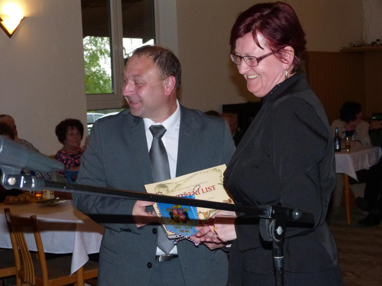Pamětním diplomem a drobnými dárky byli oceněni zasloužilí členové spolku. Mezi nimi nejstarší žijící člen a bývalý starosta Evald Jurček a jednatel Josef Klapec, oba se narodili v roce založení spolku. Mezi nejstaršími byla oceněna i Markéta Jurčková.