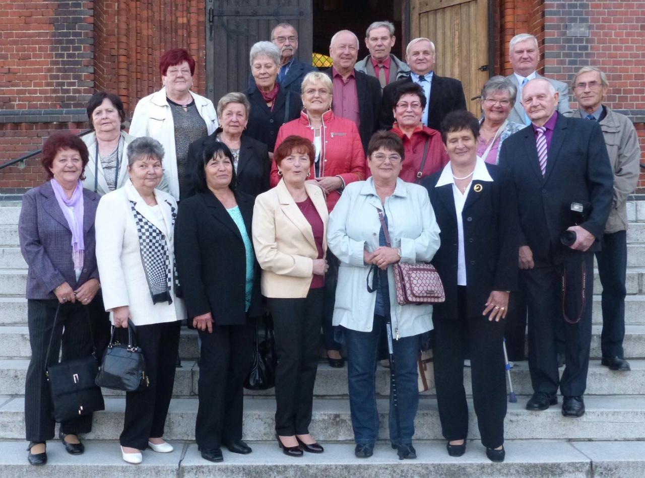 Snímek před kostelem těsně po děkovné mši svaté a před odchodem na společné posezení v restauraci v Obecním domě: