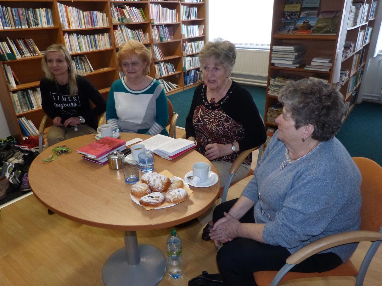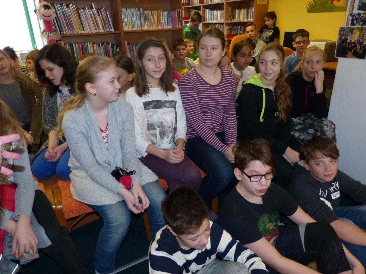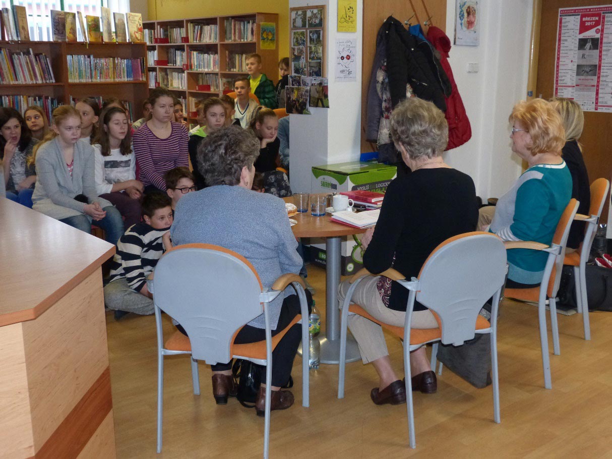 Konala se 23.3.2017. Paní spisovatelka píše půvabné knížky o lidech na Hlučínsku a často přitom používá hlučínské nářečí, kterým se mluví stále méně a děti je většinou už ani neznají. Dětem velmi zajímavě povídala o tom, jak v 20. století na Hlučínsku děti žily, mluvily, hrály si, učily se, pracovaly. Také jak byly trestány, odměňovány atd. Přečetla jim několik ukázek ze svých knížek. Děti, ze začátku roztěkané, její povídání postupně hodně zaujalo, pozorně a se zájmem poslouchaly. Byla to hezká beseda.