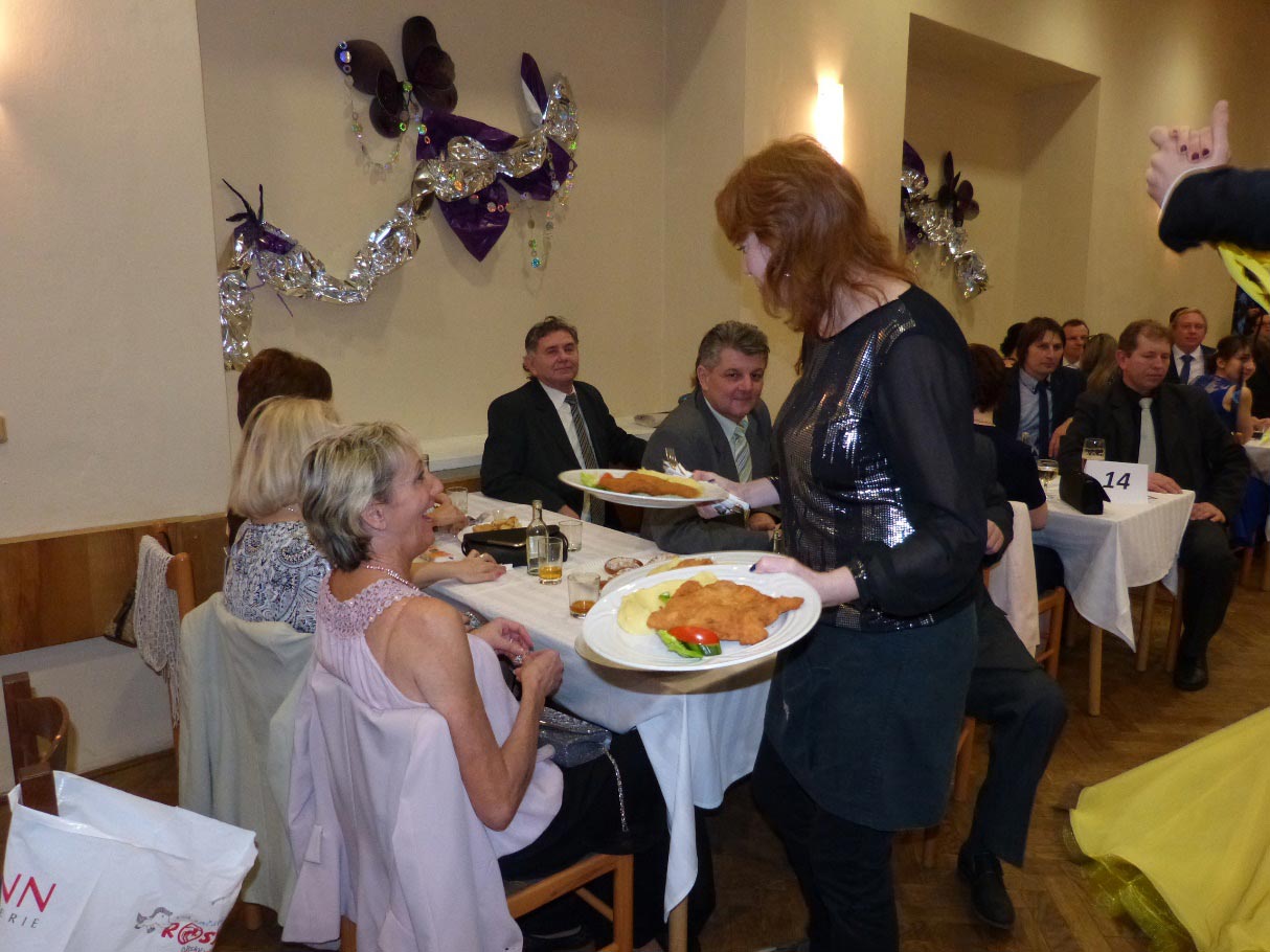 V 21.30 začaly servírky z místní restaurace roznášet večeře, kolem 23. hodiny ještě vystoupila skupina „Saltatores Dance Company“ pod vedením MgA. Kláry Krejčířové z Ludgeřovic, už známá z letošního obecního plesu, která převedla i kankán.