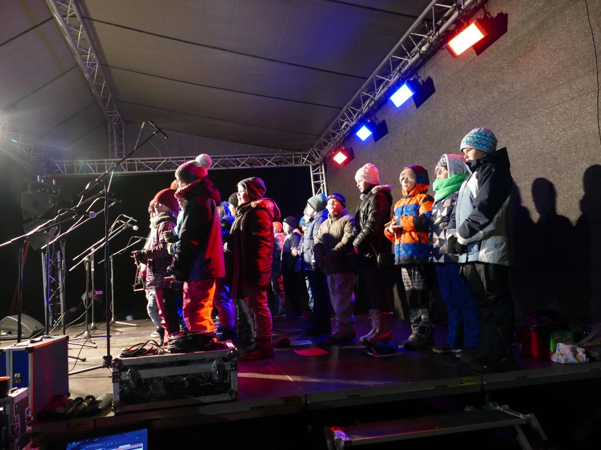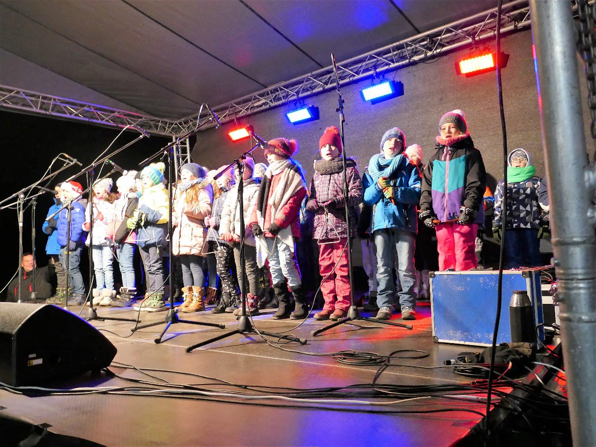 V 17 hodin začala na Menšíkové louce slavnost rozsvěcování obecního vánočního stromu. Byla zima -3ºC, foukal nepříjemný studený vítr. Návštěvníků přesto přišlo opravdu hodně a určitě nelitovali. V asi půlhodinovém vystoupení je potěšili žáci základní školy hezkým pásmem vánočních písniček. Připravena byla řada stánků s nápoji i jídlem, také oheň pro zahřátí těch nejzmrzlejších, vládla příjemná družná atmosféra.