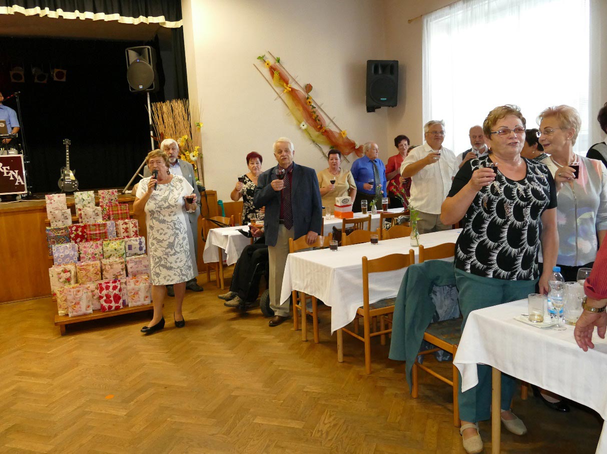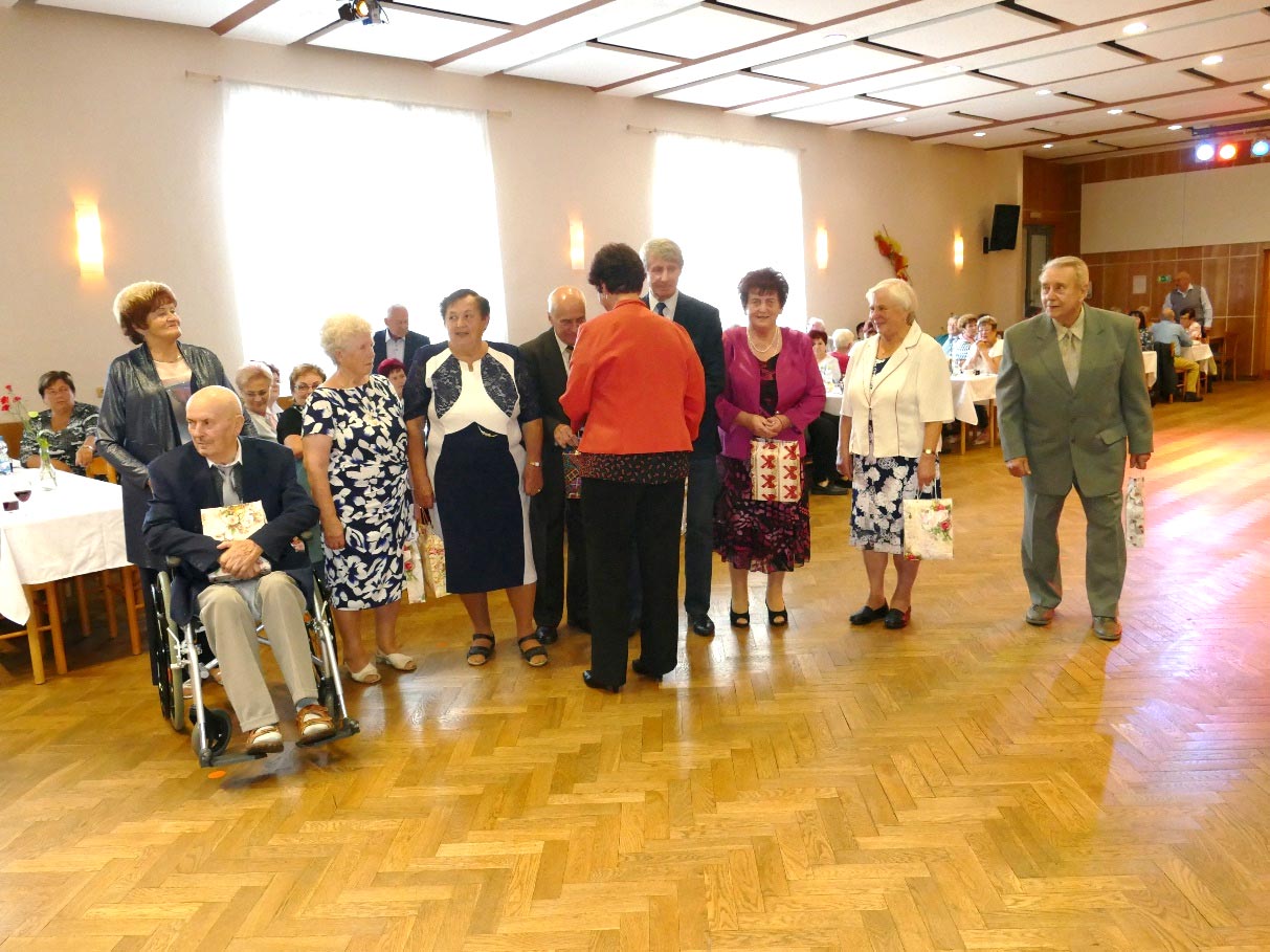 Klub má letos rekordních 47 jubilantů. Samozřejmě ne všichni mohli na oslavu přijít. Jako první předstoupili ke gratulaci a převzetí dárku (letos dostali froté ručník) pětaosmdesátníci a po nich postupně ti s věkem 75, 70, 65.