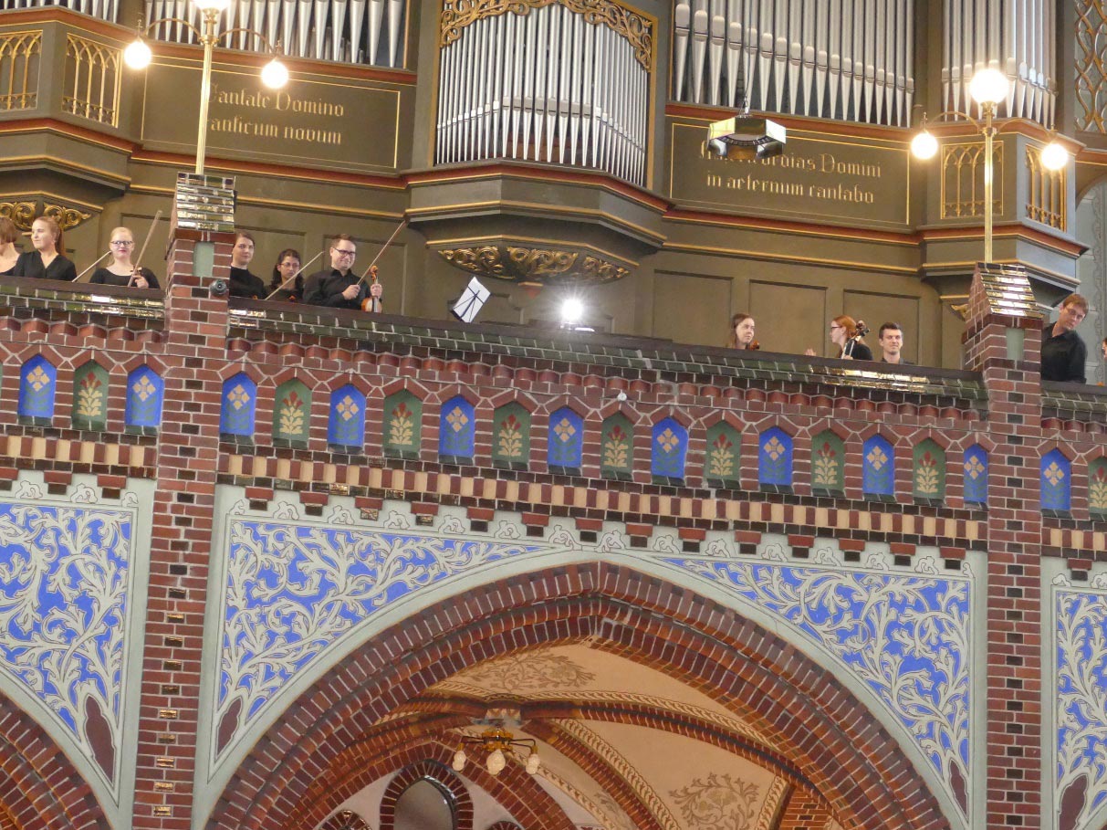 Všichni účinkující hráli a zpívali celý koncert z kůru. Na konec se přišli pozdravit s publikem dirigent a slovenští interpreti.