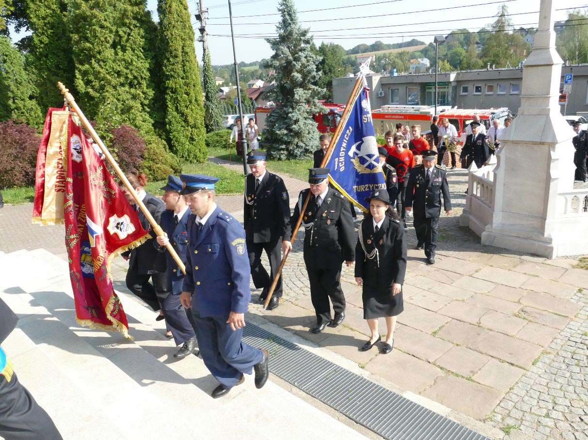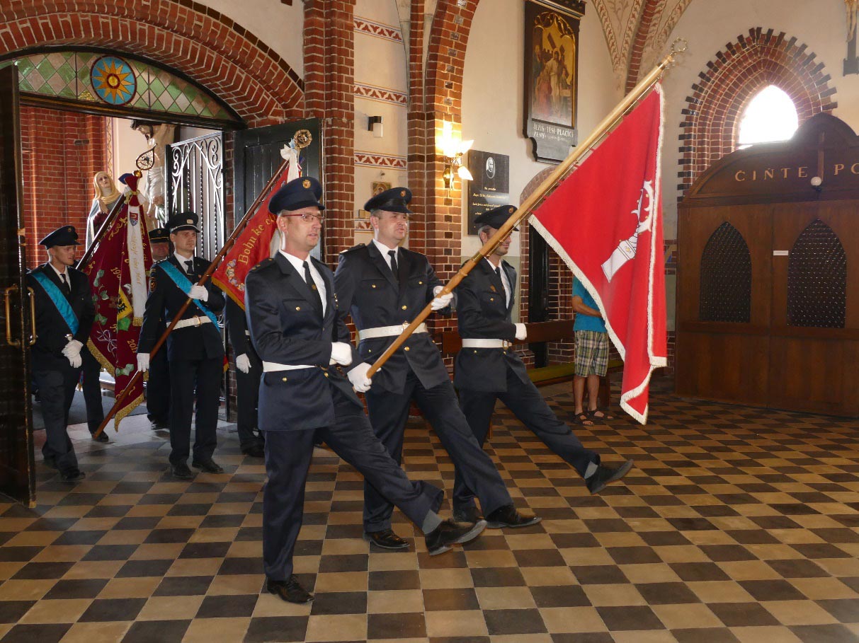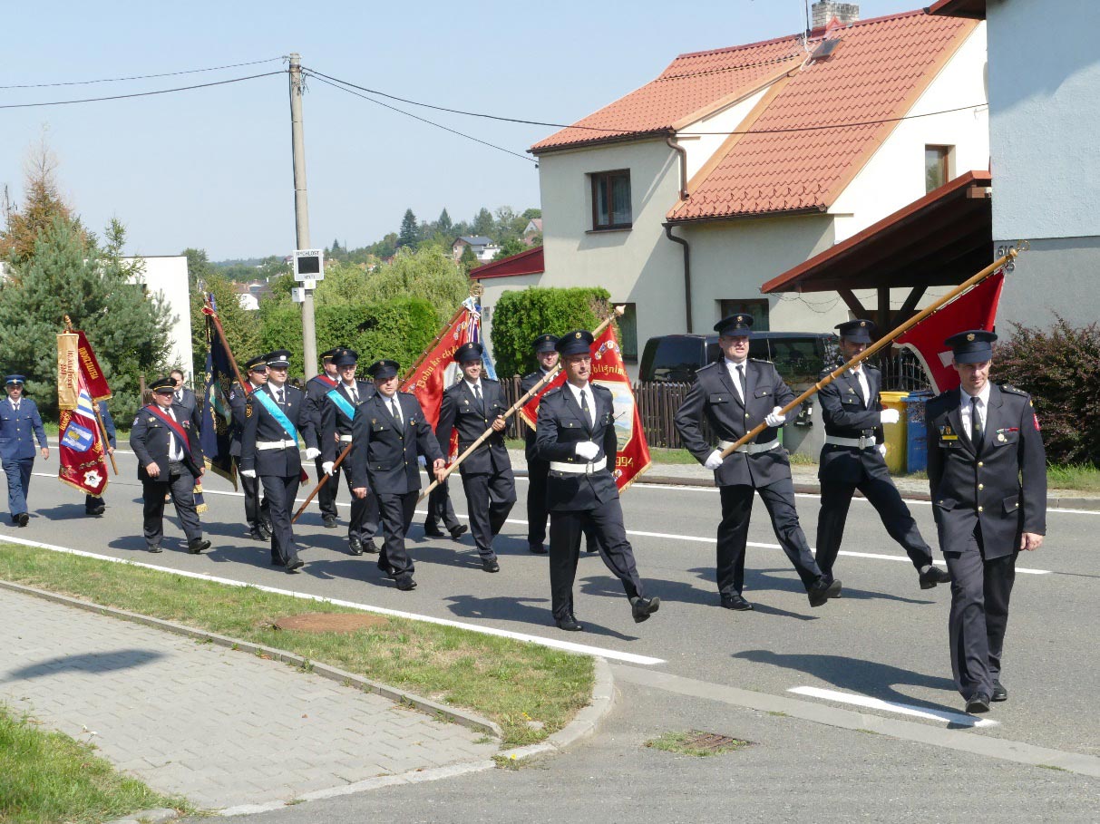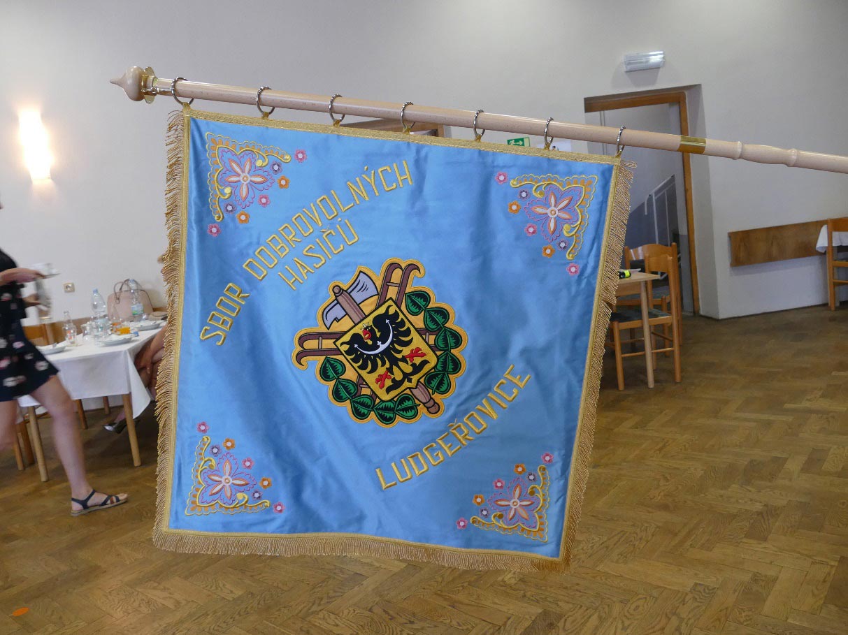 Účastnící se sešli u hasičské zbrojnice a seřadili do průvodu. Přítomny byly i delegace hasičů z družebních sborů a to z Turzyczky v Polsku a Liptovské Kokavy na Slovensku, z Hati a Vrablovce. Nechyběl prapor obce Ludgeřovice, prapory a další standarty všech přítomných sborů kromě vrabloveckého. Ludgeřovičtí nesli dva prapory svého sboru a to ten stávající, 25 let starý vyrobený manžely Fajkusovými a také prapor úplně nový. Nechyběla dechovka pana Ondruše. Průvod před desátou hodinou vykročil směrem ke kostelu, kde se konala děkovná mše svatá a po ní svěcení nového praporu ludgeřovických hasičů. Cena za pořízení nového praporu je necelých 130 tisíc Kč. 80 tisíc pokryla dotace kraje, zbytek pak rozpočet sboru. Dosavadní prapor bude uložen mezi pamětihodnosti sboru.