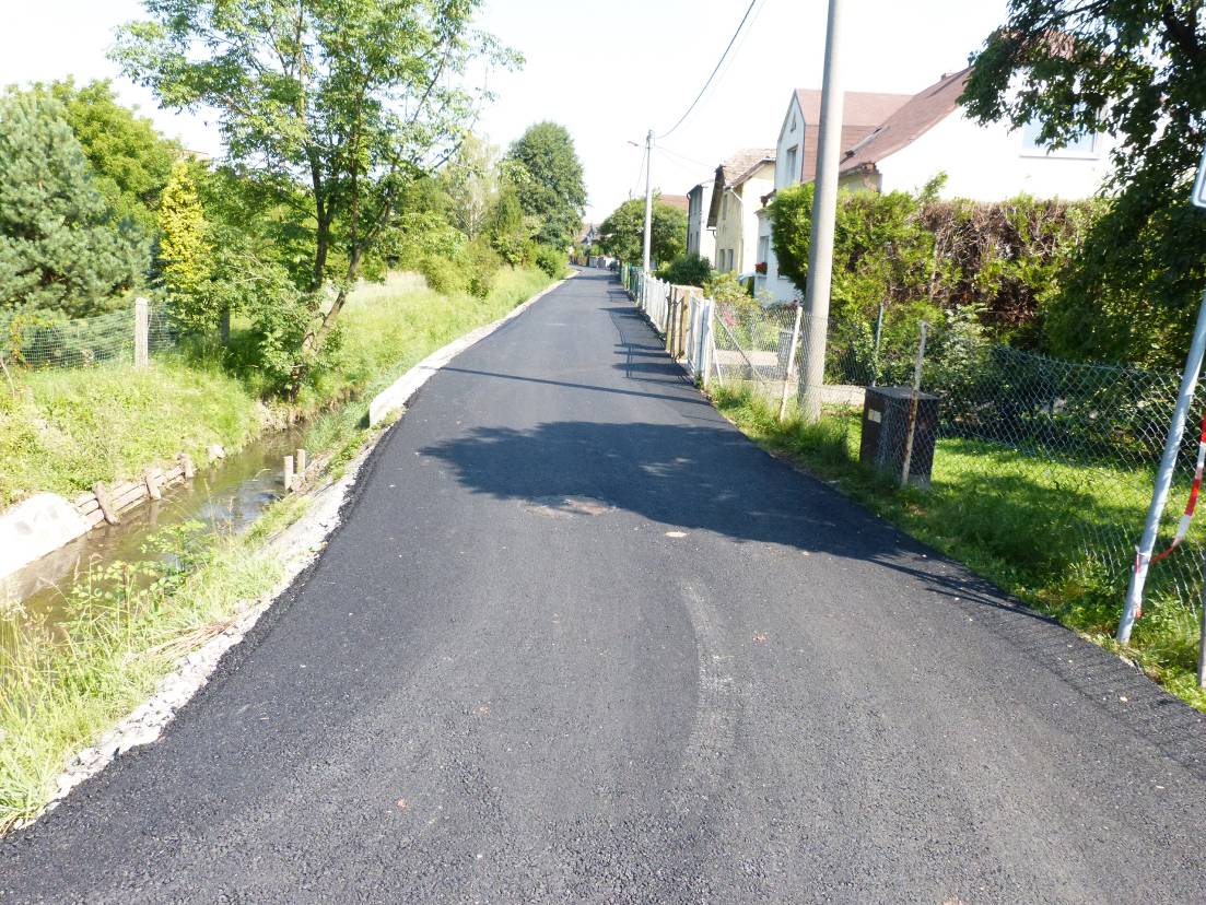 Na Návsi ještě chybí nový povrch v 0,5 km dlouhém úseku od ulice Úzká po konec u Markvartovic. Na opravu povrchu pak zbude jen několik menších ulic, např. ulice Okružní. Vše by se mohlo stihnout do konce prázdnin.