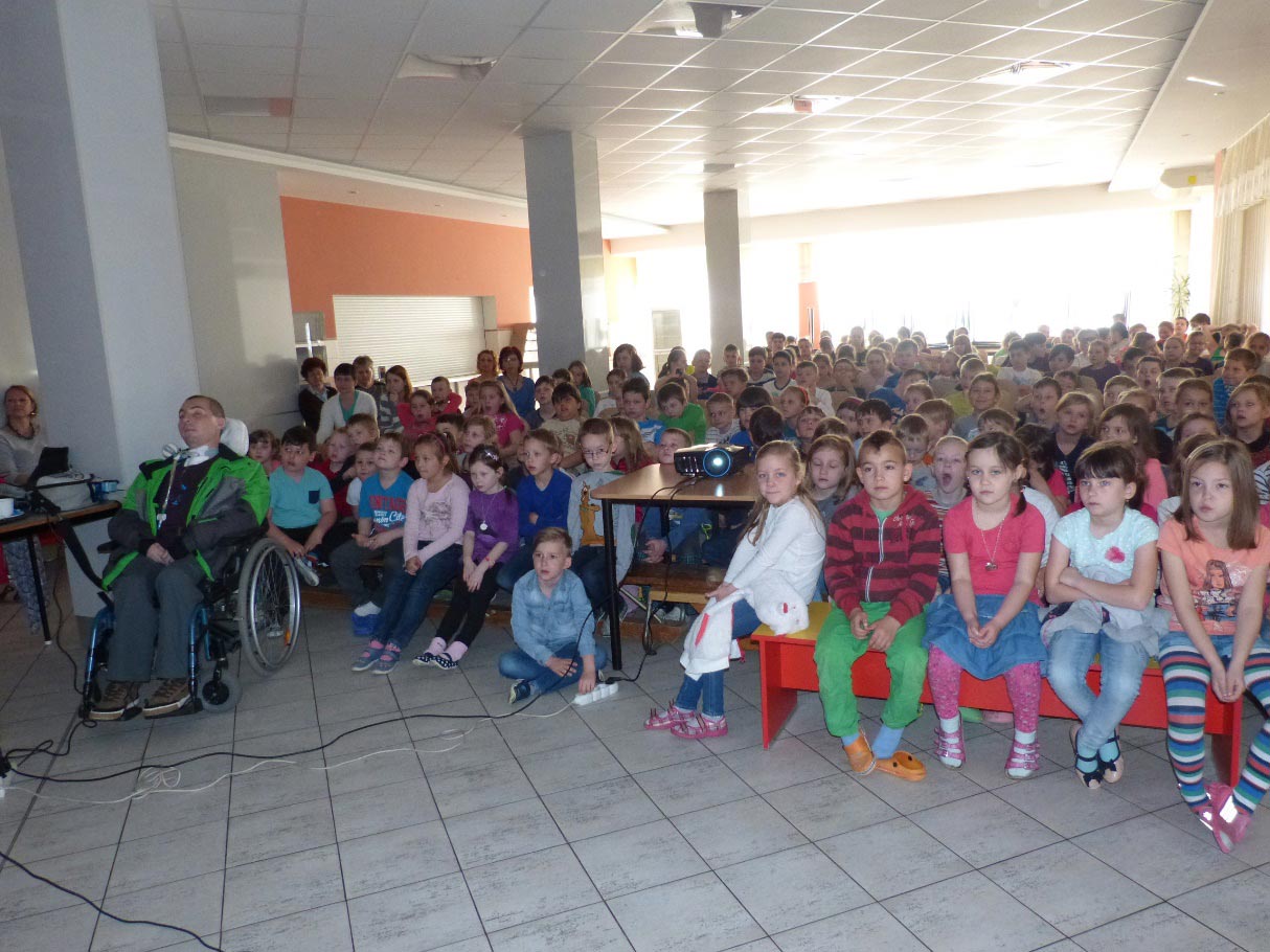 Konala se 28.4.2016 ve školní jídelně, pořadatelem byli základní škola a obecní knihovna. Cestovatelská rodina Márových, otec Jiří, matka Alena, syn Jiří na invalidním vozíku a dcera Monika, už spolu procestovali řadu zemí po celé zeměkouli. Vede je k tomu svému zdravotně postiženému synovi co nejvíce zpestřit a zpříjemnit život na invalidním vozíku. O svých cestách a zážitcích na nich už napsali řadu úspěšných knih a pořádají o nich besedy. V Ludgeřovicích už besedovali několikrát. Tentokrát to byla dvě dvouhodinová vyprávění doprovázená videi a fotografiemi, nejdříve pro mladší žáky a pak pro ty starší. Hovořili o svém putování po jižní Francii v minulém roce. Dětem se to hodně líbilo, zajímavou formou se toho o současné Francii dozvěděli určitě více než v hodinách zeměpisu.