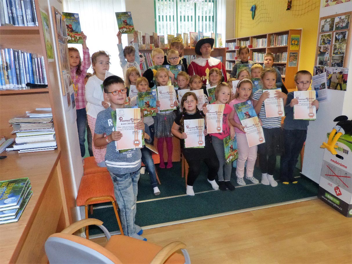 Pasování žáků druhých tříd základní školy na nové mladé čtenáře